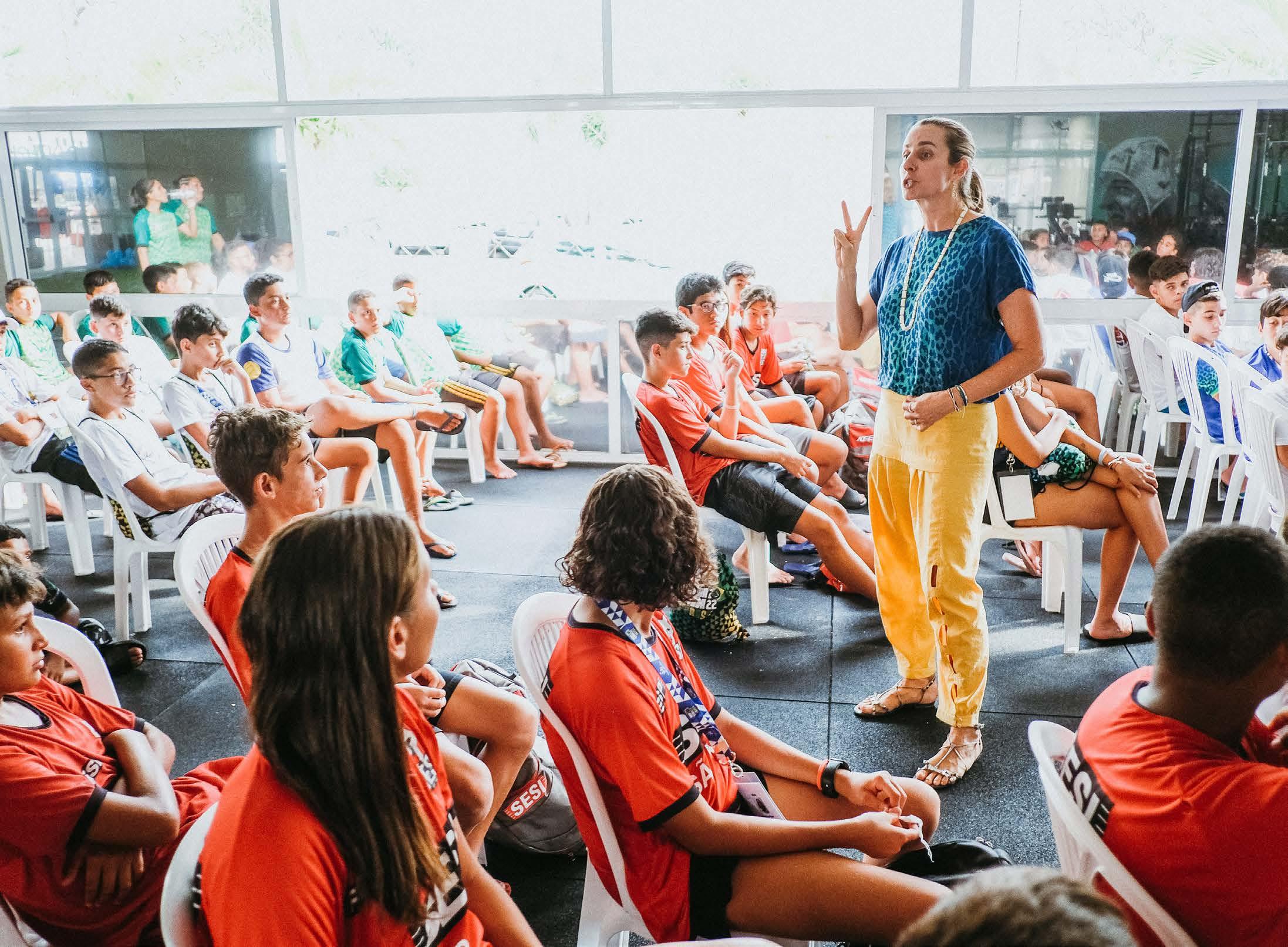 Jogos, competições, workshops envolvem todos os participantes por meio de atividades lúdicas e educacionais.