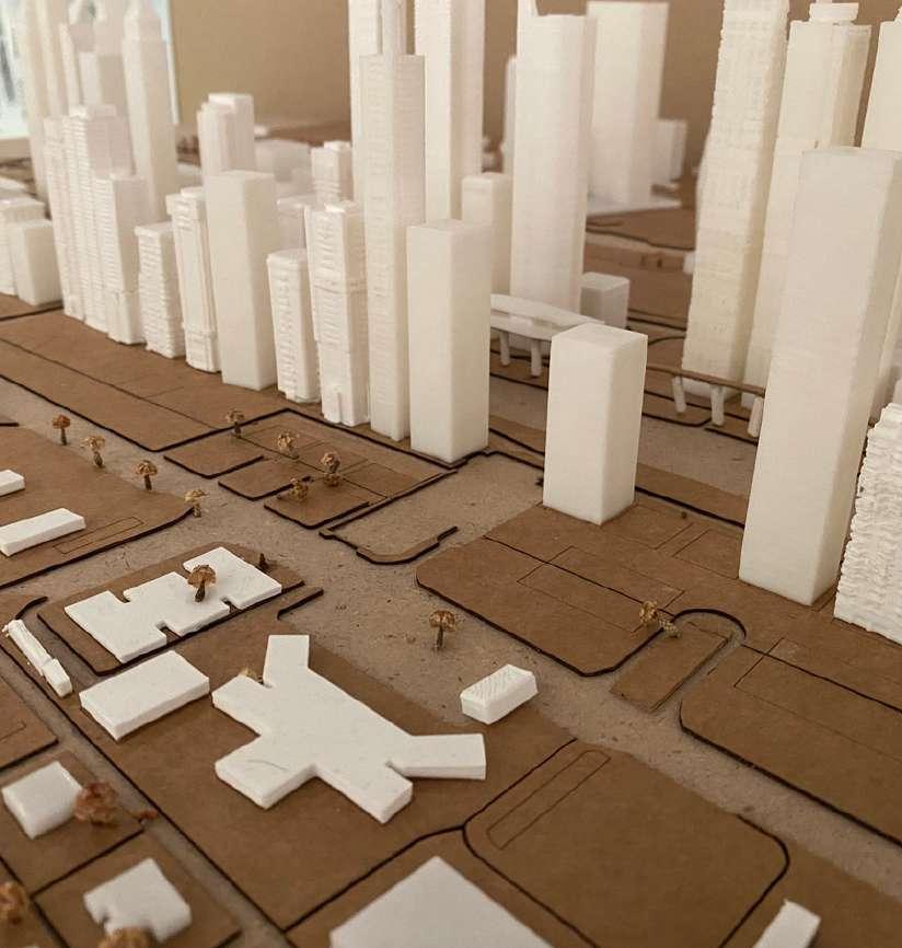 In respect to the main pathways, we zone out the negative space in between and extrude the form to create our first massing of the structure