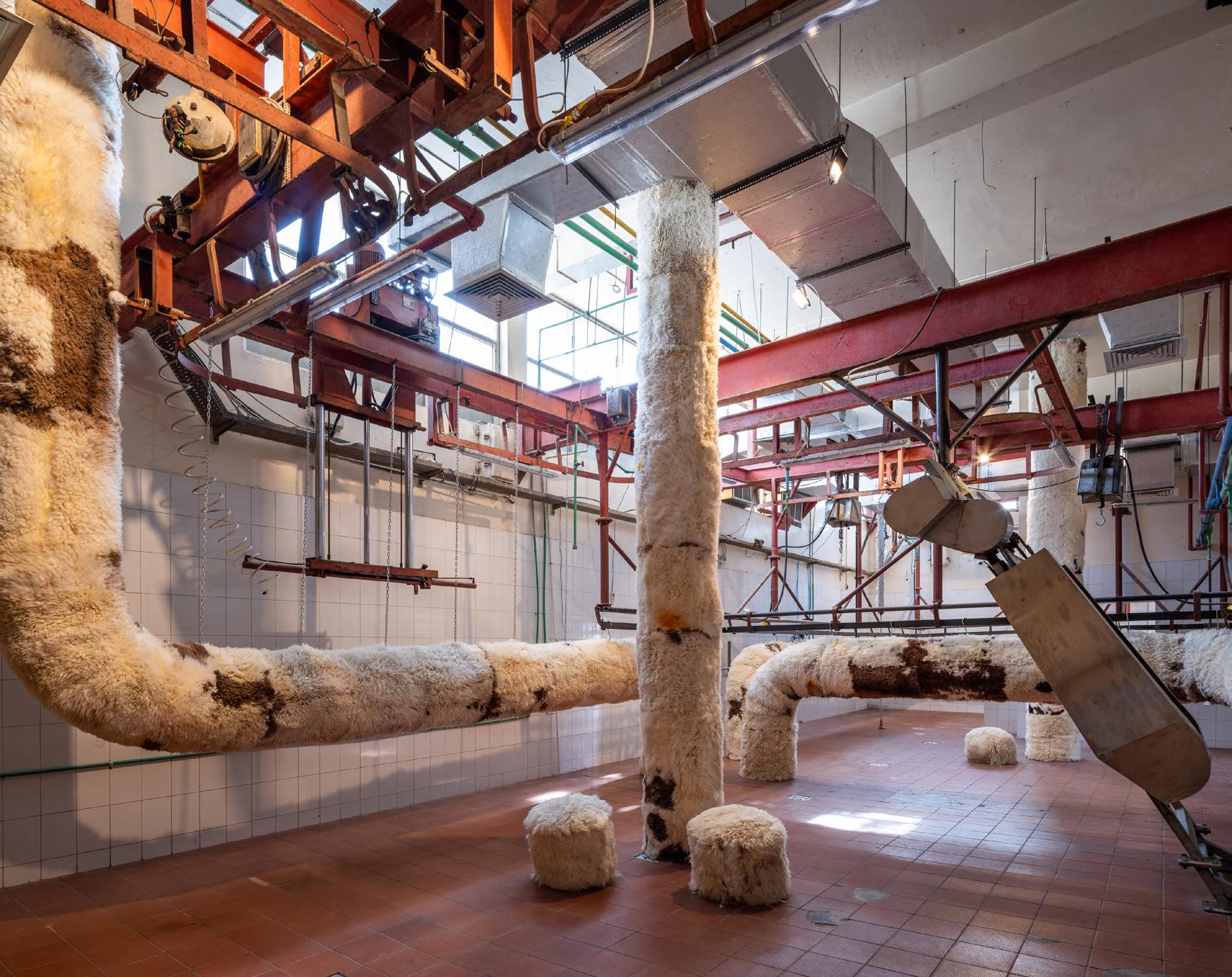 The space was curated in a way to play homage to the animal, by playfully placing skins across a slaughterhouse, essentially making the sheep reclaim the place it used to be slaughtered within.
