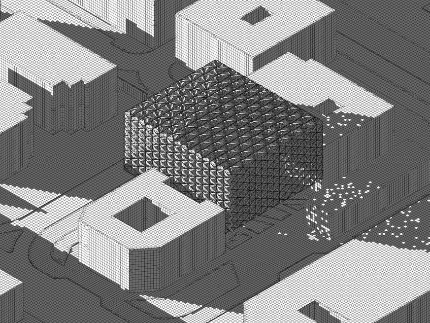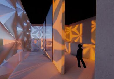 The Cube when hit with sunlight creates interesting scattered patterns along the surround pathways and since the overall structure tends to bigger than the surrounding buildings, people will have a higher tendency to walk towards it to get away from heat.