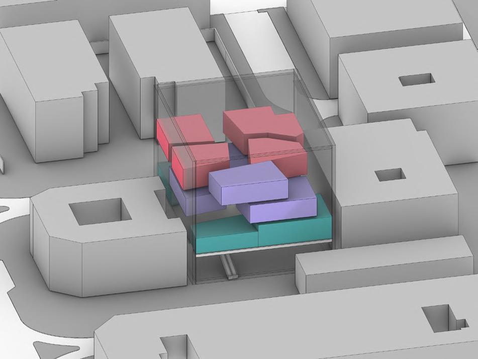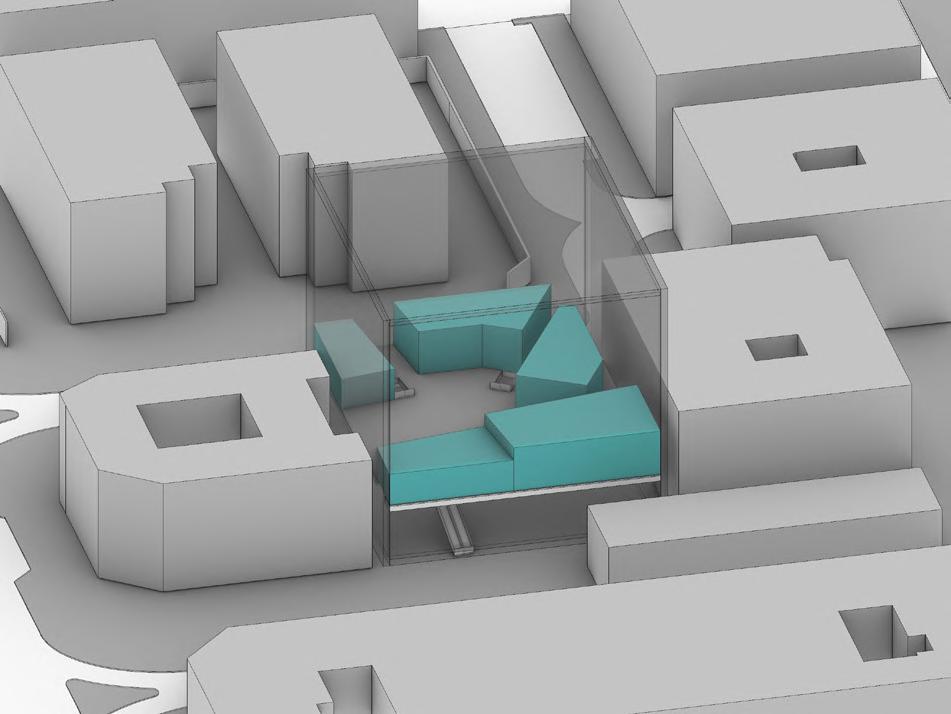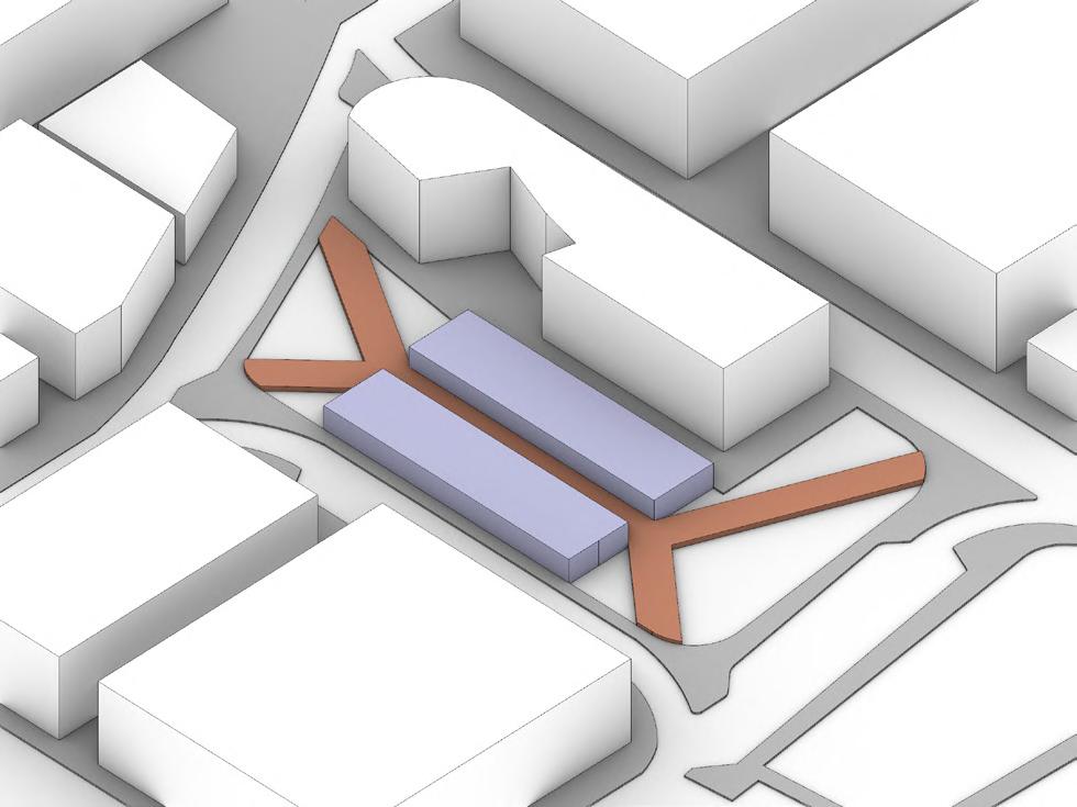 Basement Entrances are added on to specific sides of the site based on traffic movement, pathways and the buildings start to take up their own form