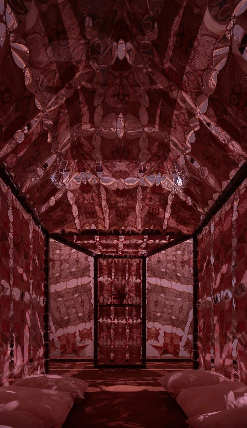 Yussef’s designed an Ash Cleaning Temple as a living architectural entity for homing non-human life and endangered species in the womb of a sacred mountain. It honors ephemeral rituals across architecture, performance, and art within Bedouin, Yoruba, and Cherokee communities that respect the natural world and practice environmental consecration..