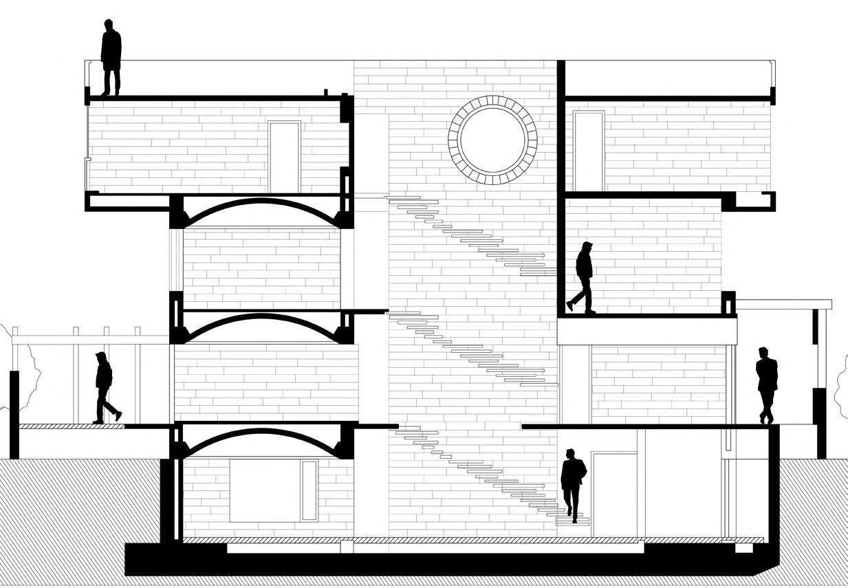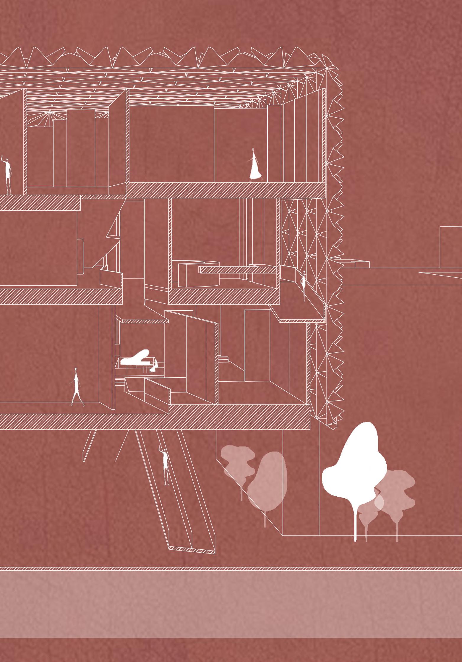 The left negative spaces are used to layer the firs ground floor structures on either side of the central spine