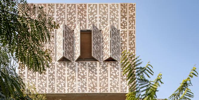 4 Barjeels in total are placed within the three forms, collectively providing for passive cooling for the spaces on hotter days.