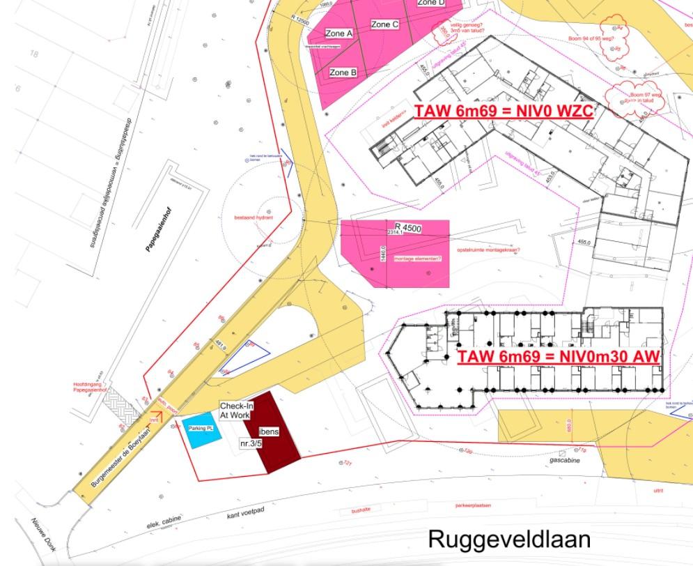 Inplantingsplan: toegangswegen tot site P a p e g a a i e n h o f Toegang site (gemotoriseerd verkeer) WZC DC Inrit Parking Ruggeveldlaan GAW Landschapspark fietsostrade