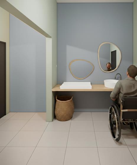 • sanitair: er wordt 1 rolstoeltoegankelijk toilet