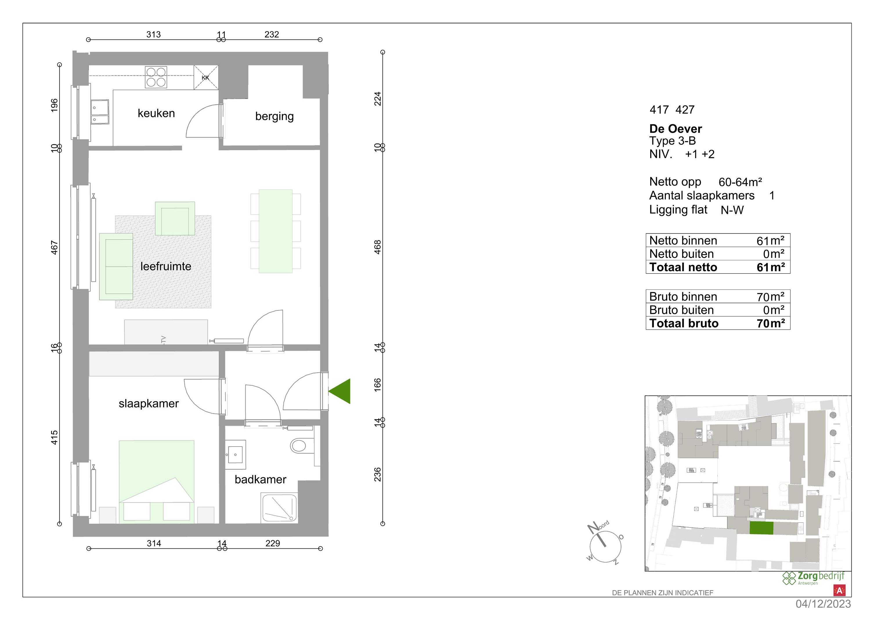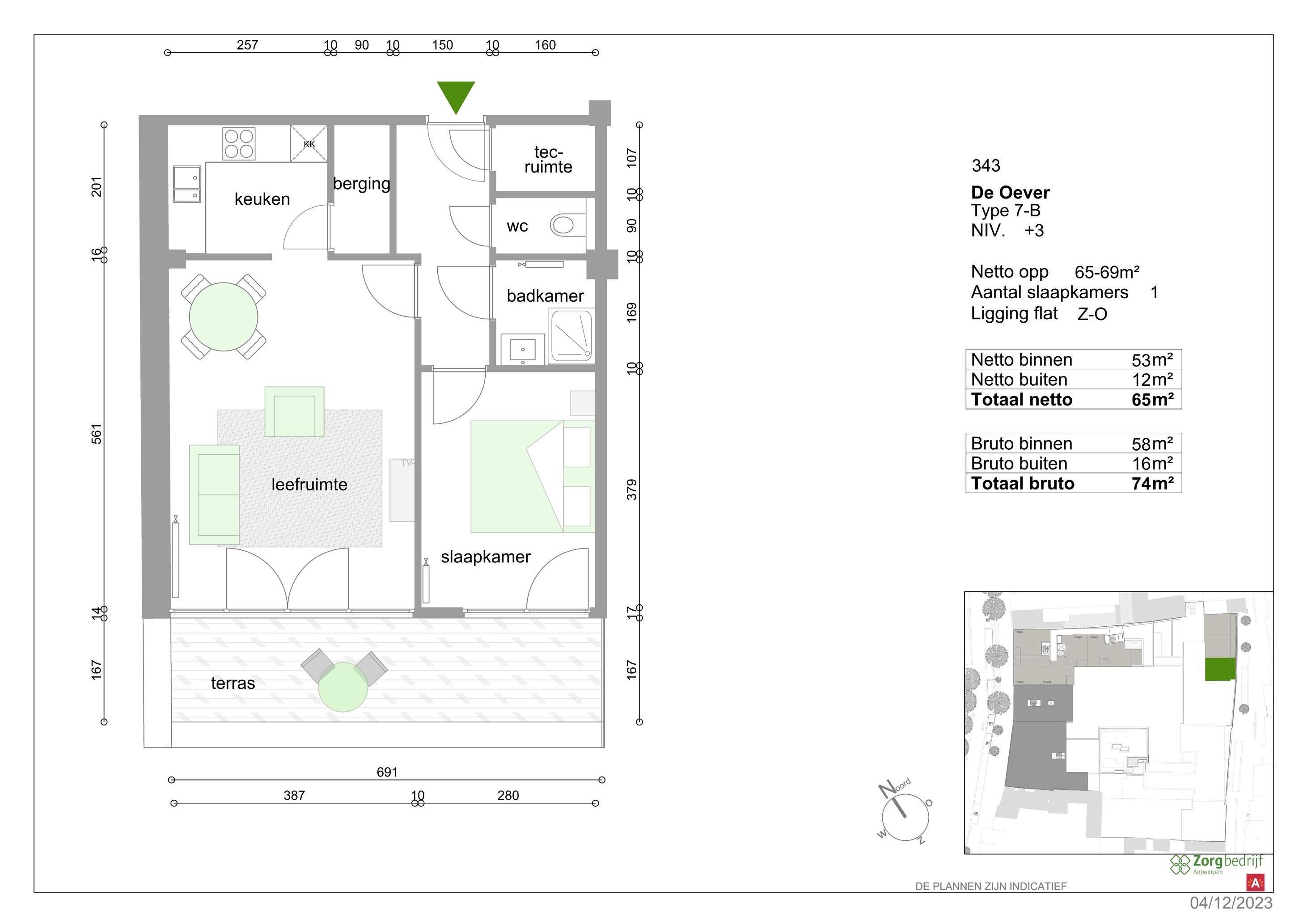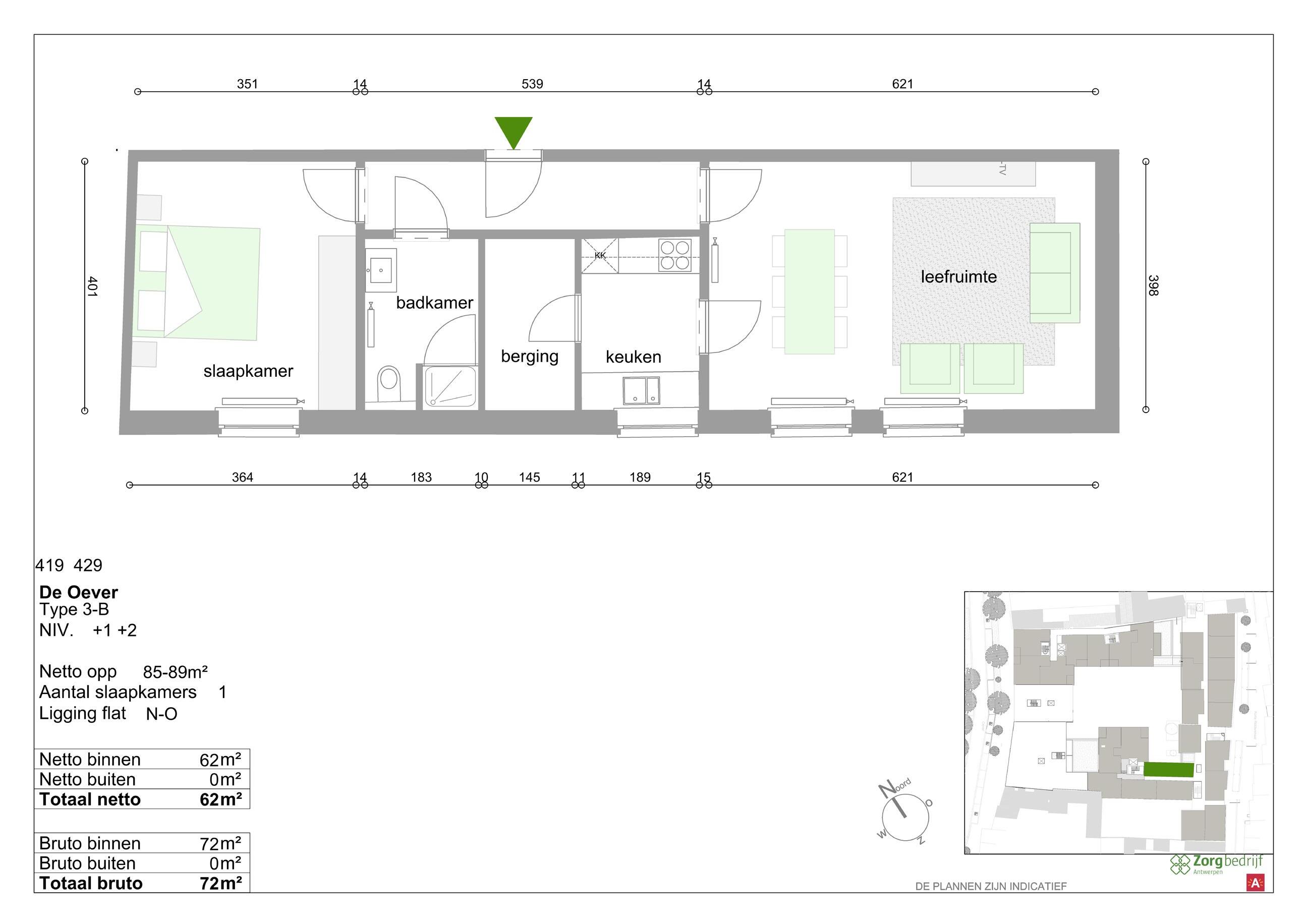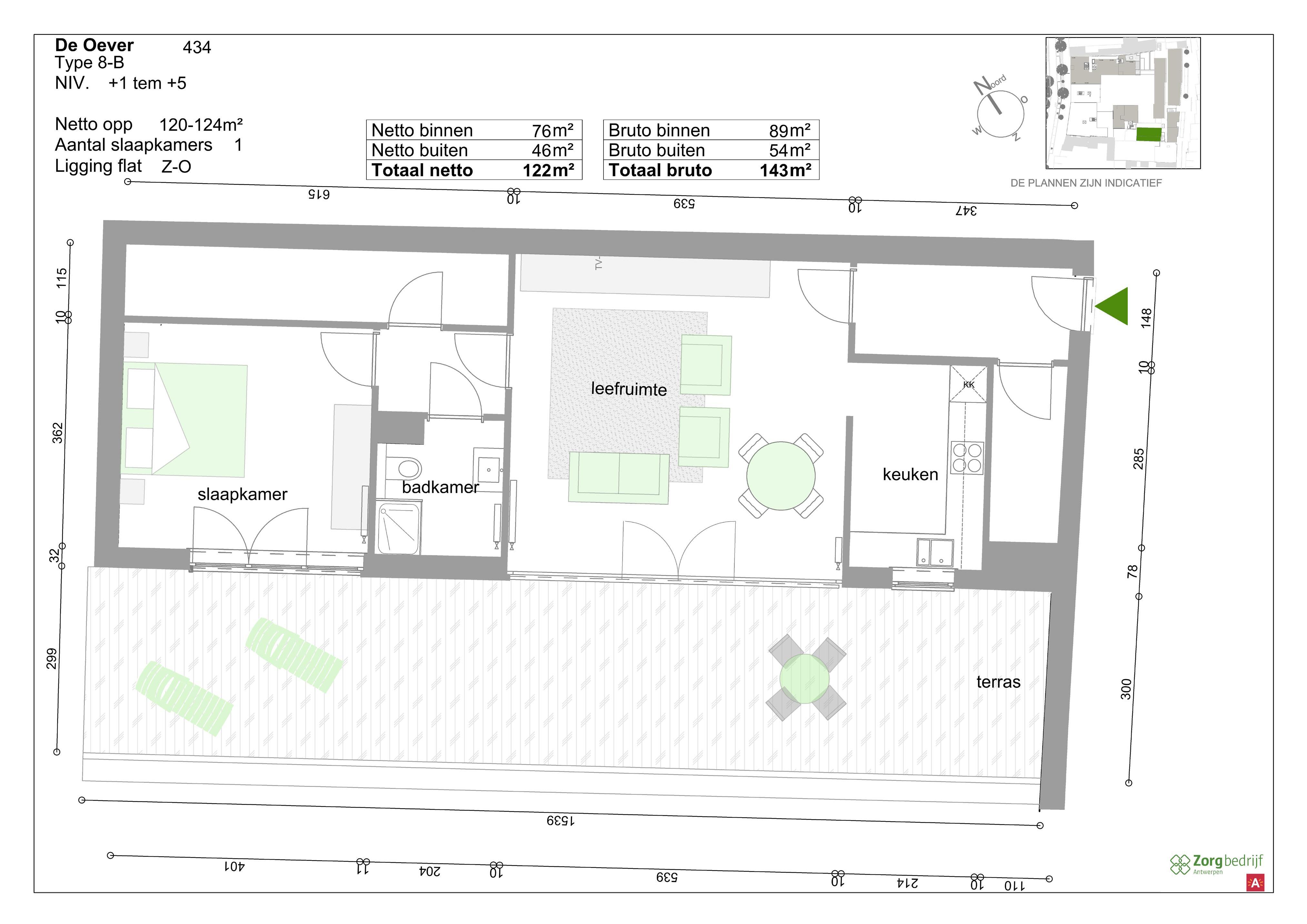 Op de volgende pagina’s vindt u plannen per type assistentiewoning met een idee van hoe u de flat zou kunnen inrichten. Kleine afwijkingen zijn mogelijk.