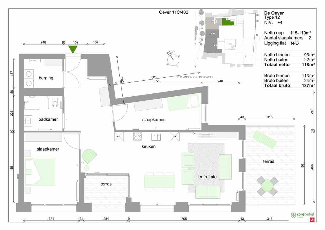 • De flats worden opgetrokken rond een mooi aangelegde binnentuin. Die binnentuin zorgt tevens voor een doorsteek van de Oever naar de Korte Riddersstraat.