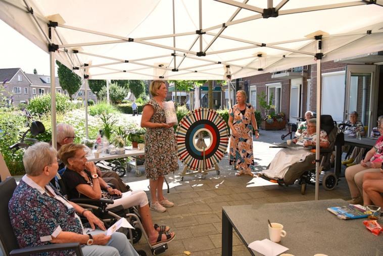 Er viel weer heel wat te winnen tijdens het spel Rad van Fortuin – een populaire activiteit tijdens de campingweek bij verzorgingshuis Markehof. Dat de bewoners er zin in hadden, bleek wel uit het aantal deelnemers: al vóór de start zochten velen een mooi plekje uit op het terras voor de camping.