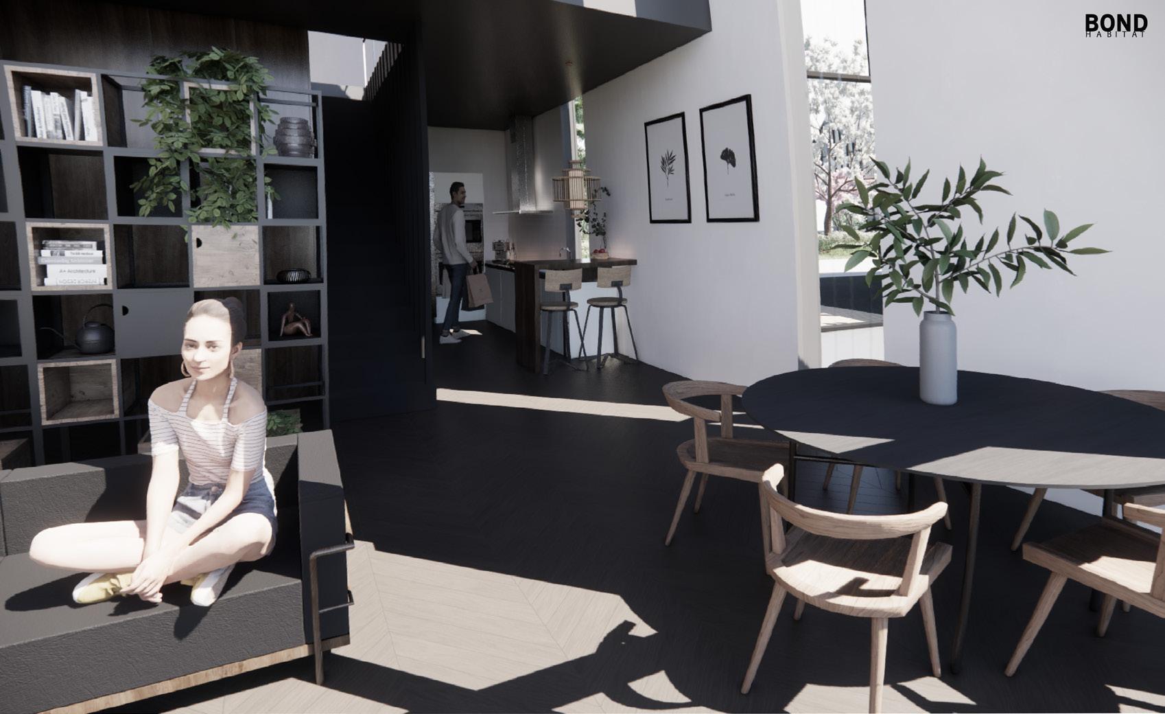 Bond Habitat is an urban design concept for a cohousing community, developed to apply the principles of sustainable development on the scale of a residential neighborhood. The project is based on a detailed analysis of the spatial, acoustic, historical, and environmental context of the site in Stabłowice. Its aim is to create a functional, socially engaging, and environmentally responsible living environment that minimizes ecological impact while ensuring a high quality of life for residents.