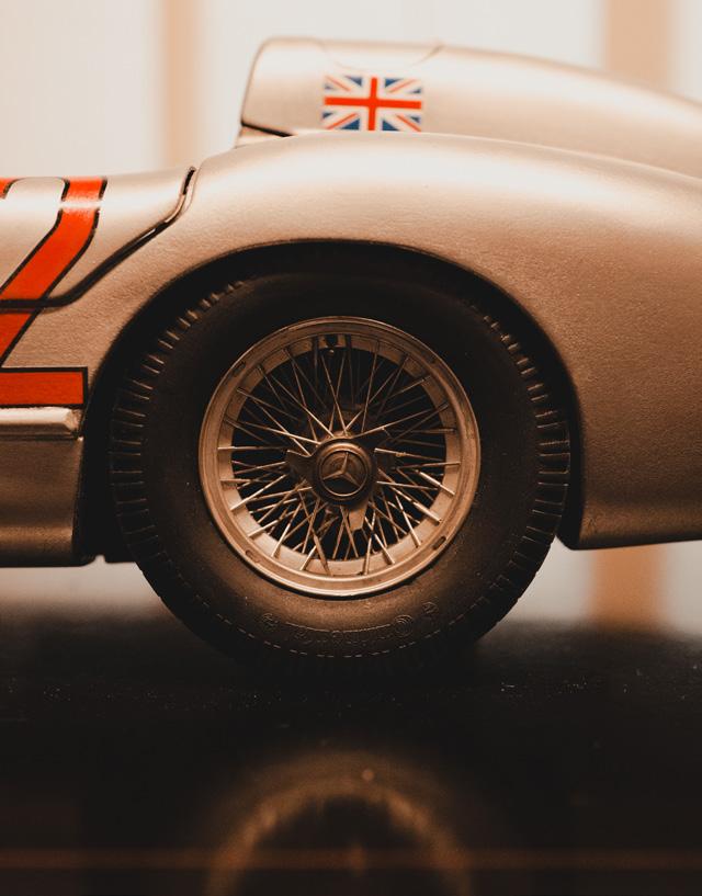 “Ieder onderdeel van de wagen moet eruitzien alsof het echt geracet heeft en onderhevig is aan de tand des tijds. Een uitlaat is niet van blinkend aluminium, neen, een uitlaat heeft geleefd, net als een motorblok en dat moet je zien, ook bij een model.”
