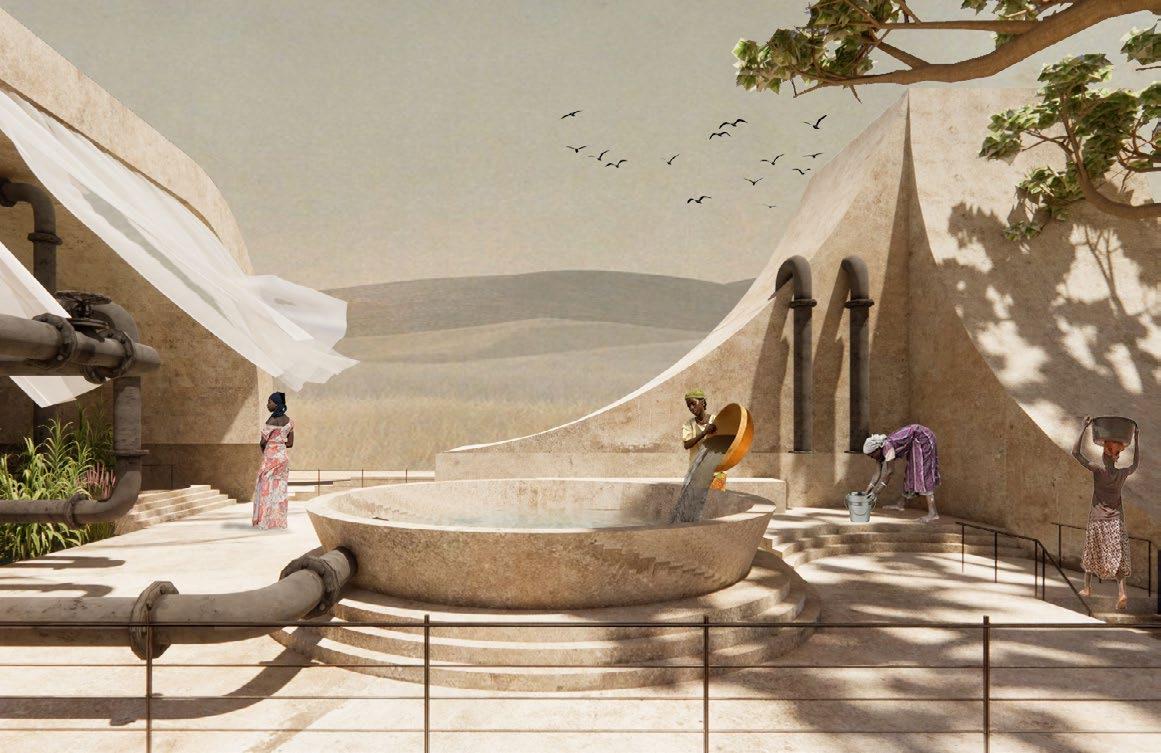 The space is located in Port Harcourt in the Nigeria region of Africa, which has experienced decades of oil pollution, causing the local people to suffer from disease for many years due to the lack of clean water, a large number of children died from oil pollution, forcing people to face death and unemployment. This space can not only provide purified water for local people, but also heal inner anxiety and anxiety through the "tree healing method" and commemorate the dead children, while providing employment for local residents and letting people live a better life.