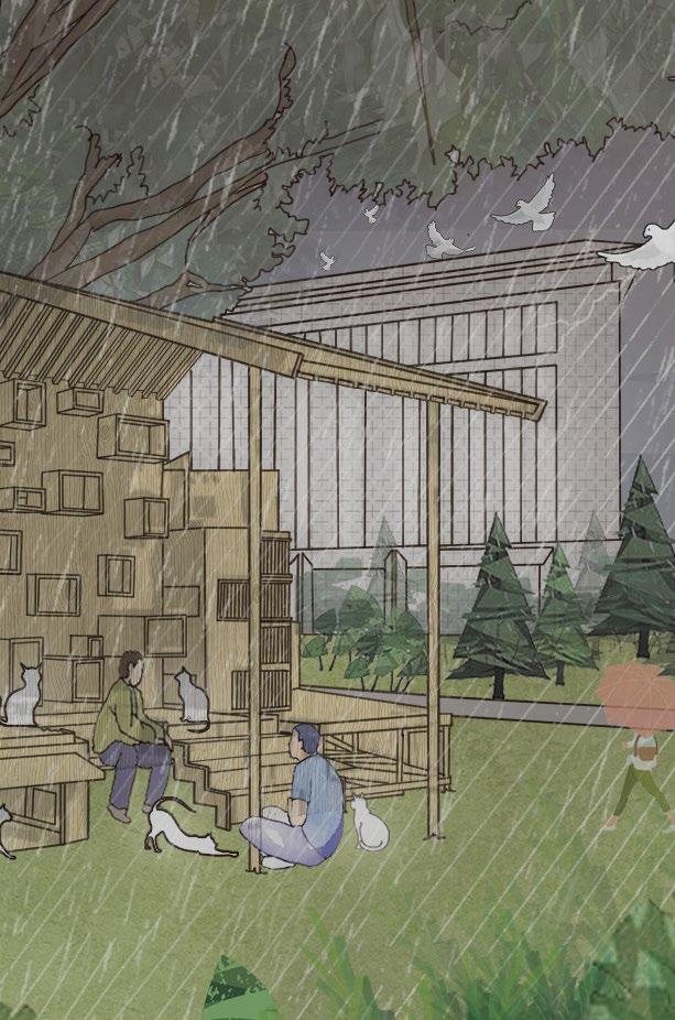 This project is a human-cat co-existence device designed for stray cats on campus. At present, the overflow of stray cats on campus not only brings a lot of troubles to people, but also faces great difficulties in their own survival. The whole device is divided into six parts, which can be assembled at will according to different needs of different sites, so as to solve various problems brought by stray cats.