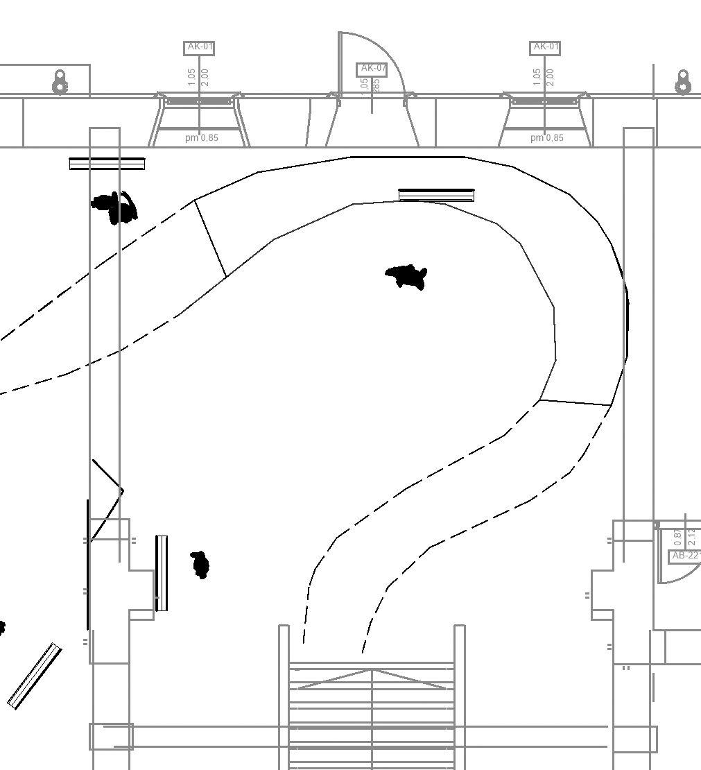 Soundscape, painted graphics on brick wall, transparent LCD video presentation, graphic panels.