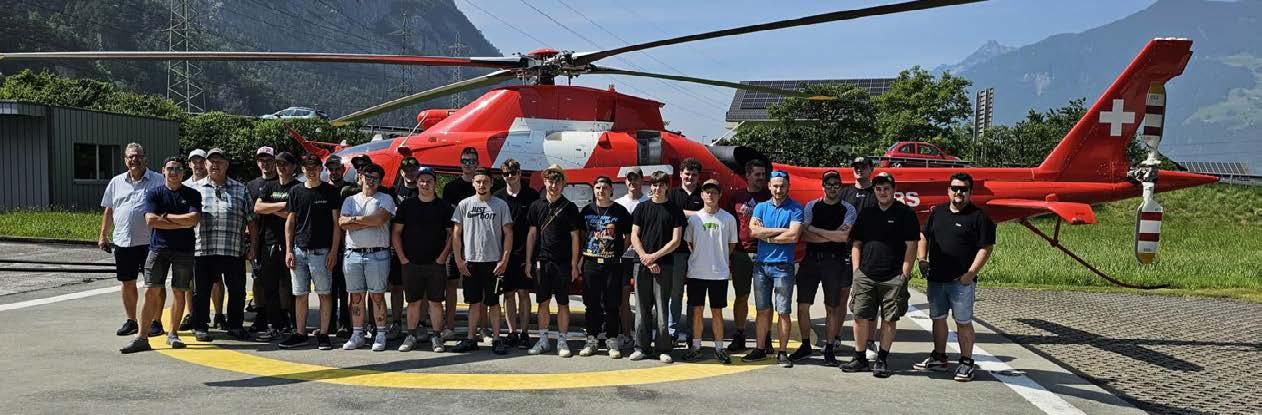 Den Abschluss der Reise bildete der Besuch der REGA-Basis in Erstfeld. Pünktlich zu unserer Ankunft startete der Helikopter zu einem Rettungseinsatz für einen Gleitschirmflieger und kehrte rechtzeitig zurück, sodass wir nach einer theoretischen Einführung auch den Helikopter aus nächster Nähe begutachten konnten.