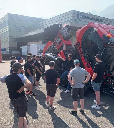 Am zweiten Tag stand ein Besuch bei der Firma Kässbohrer Schweiz auf dem Programm. Zwei junge Mitarbeitende – der Serviceleiter Schweiz und der Werkstattchef Altdorf – führten uns durch das gesamte Areal, inklusive Waschplatz und Werkstatt. Ein besonderes Highlight war der PistenBully 800, der für unsere Gruppe bereitstand. Die Maschine wurde detailliert erklärt und durfte sogar bei laufendem Motor getestet werden – ein unvergessliches Erlebnis für unsere angehenden Mechaniker.