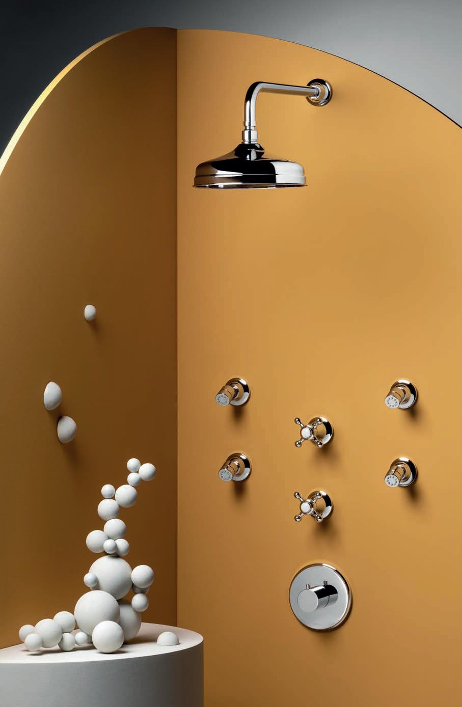 ES Agorà es una colección de baño completa que nace en los años treinta pero cae inmediatamente en el olvido, a causa de la progresiva e irre frenable evolución hacia la modernidad. Par tiendo de los viejos dibujos pre to de grifería y accesorios respetando su herencia cultural. Un desafío que se ha superado combinando perfectamente pasado y presente con gran eclec ticismo y gracias al empleo de materiales de última generación.