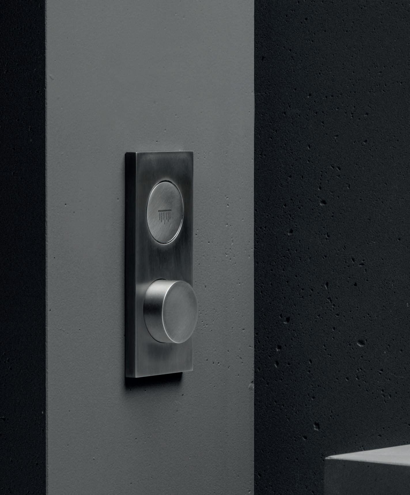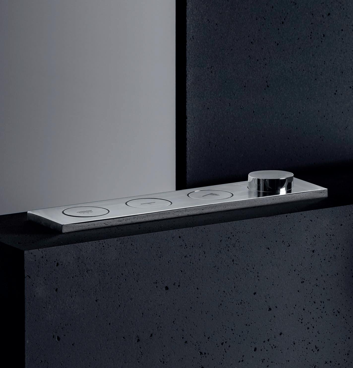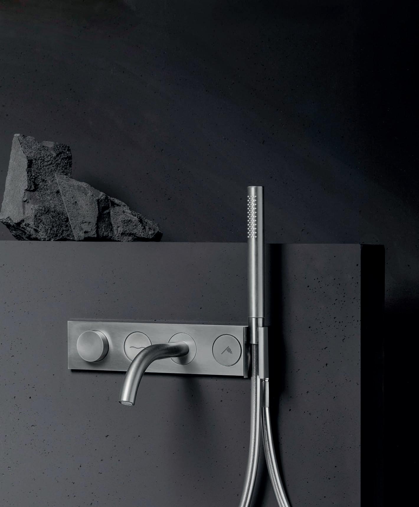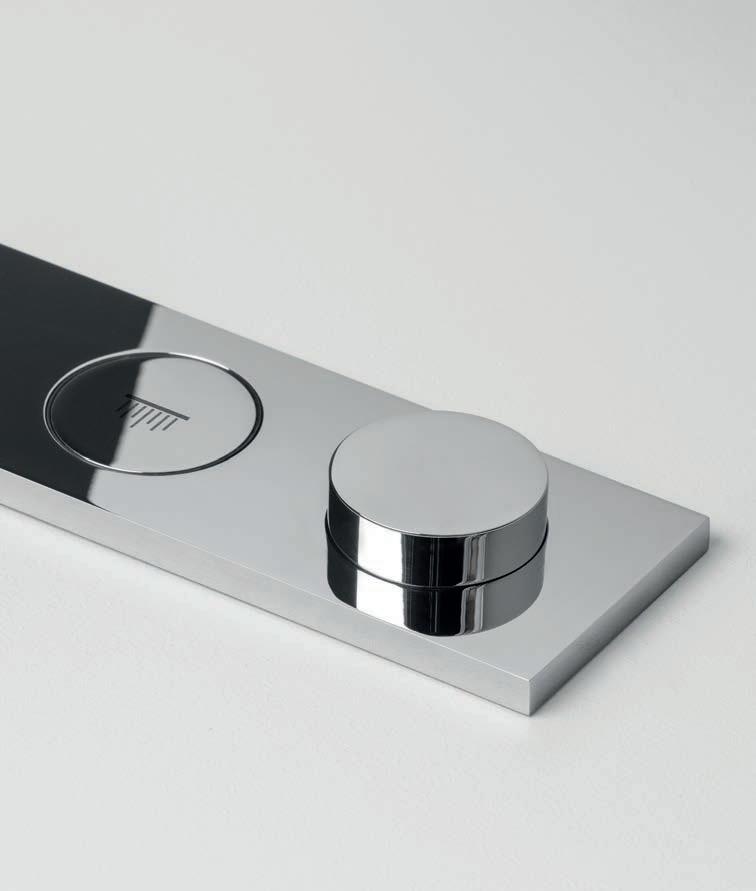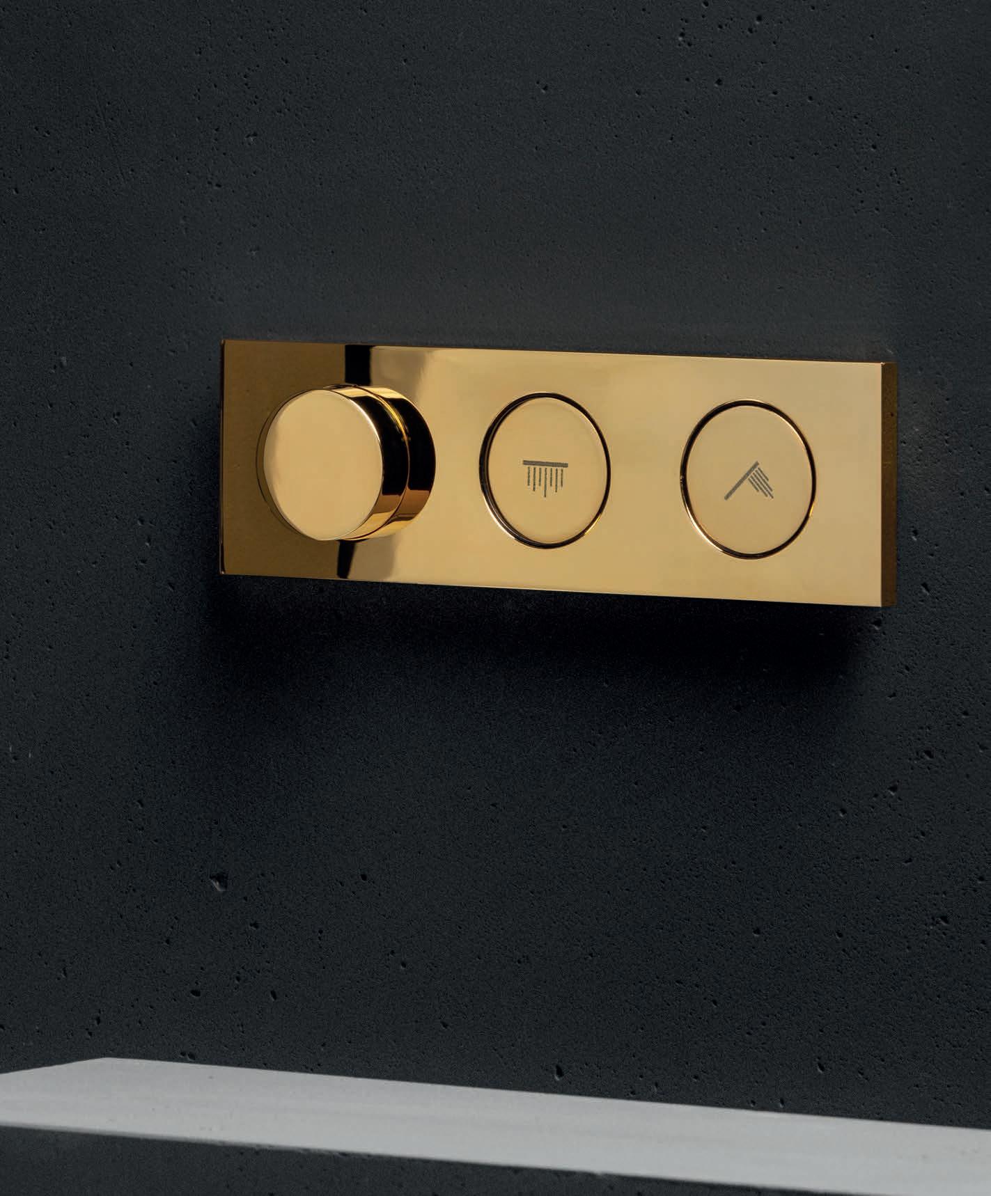 thermostatic version for bath and shower and can combine one to four water outlets. Aesthetics and functionality are new and immediate. A simple push of the corresponding button turns the water on or off.