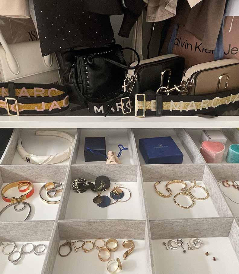 “Ik shop veel online. Met vier meiden in huis, worden er hier aan de lopende band pakketjes bezorgd, maar we lenen ook veel van elkaar. Ik hou ook van aparte winkeltjes en ga graag naar de markt. Mijn persoonlijke stijl is sporty chic. Ik draag graag een baggy broek met een wijde blazer erop, kort topje eronder. Ik ben gek op kleine details zoals een label op de mouw of een apart stiksel. Eronder gympen of een hakje. Samba’s of New Balance. En een mooi tasje, zoals een Marc Jacobs bag van de Bijenkorf om het af te maken. Het liefst in het groen, dat is mijn lievelingskleur.” <