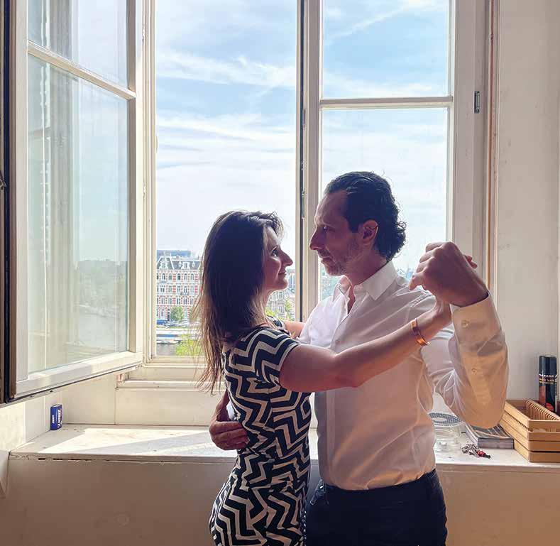In het bruisende De Pijp woont een minstens zo bruisend tangopaar: Damián Rosenthal en Vanessa Fatauros. Opgeleid door vooraanstaande tangomeesters, reizen ze de wereld over voor optredens en geven ze al jaren tangolessen onder de naam Tango and Core. Damián, met zijn Argentijnse achtergrond, en Vanessa, geboren in Amsterdam met een Nederlandse moeder en Argentijnse vader, ontmoetten elkaar in een tangosalon in Buenos Aires. Het was liefde op het eerste gezicht. Na een korte periode te hebben samengewoond in Parijs, zijn ze nu gesetteld in De Pijp. Met hun twee jonge dochters wonen ze op een ruime etage aan de Amsteldijk - in het ouderlijk huis van Vanessa - met bovenin een dansstudio. Tijdens de thee wil ik natuurlijk álles weten over de prachtige sensuele parendans...