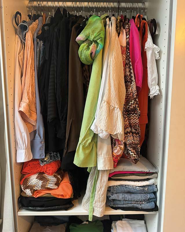 “Ik shop veel en ben ook fan van online. ’s Avonds als ik in bed lig, sturen m’n vriendinnen en ik elkaar alle nieuwe kledingtrends van TikTok door. Daar ben ik wel echt gevoelig voor. Dan denk ik, oh dat ziet er leuk uit, en dan koop ik het. Maar ik kan ook, als ik bijvoorbeeld over drie weken een feestje heb, nu al op zoek gaan naar de juiste outfit. Ik check dan verschillende sites, waaronder Ohpolly, waar ik vaak iets vind dat goed bij me past. Ik bestel dan rustig vijf jurkjes en altijd in een maat S en een M, om vervolgens te kijken welke het beste zit. De rest gaat weer terug de zak in op retour. Ik woon boven een schoenenwinkel, die neemt alle pakketjes voor me aan. Daar heb ik echt mazzel mee.”