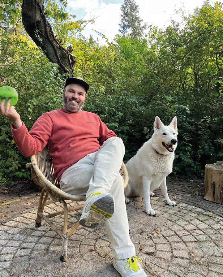 Nora had drie gaten in haar kop; het is een wonder dat ze het heeft overleefd. Het was een enorme schok voor zowel Nora als mijn vrouw Melanie, die haar op dat moment heeft moeten bevrijden. Daarna moesten we Nora op een veilige plek trainen om haar vertrouwen terug te winnen. Het was een geluk bij een ongeluk. De zoektocht naar een afgelegen plek leidde ons uiteindelijk naar onze volkstuin. Het is een heerlijk plekje aan de rand van Amsterdam-Zuid, ver weg van de drukte. Het doet ons denken aan de Veluwe, waar we allebei vandaan komen.”