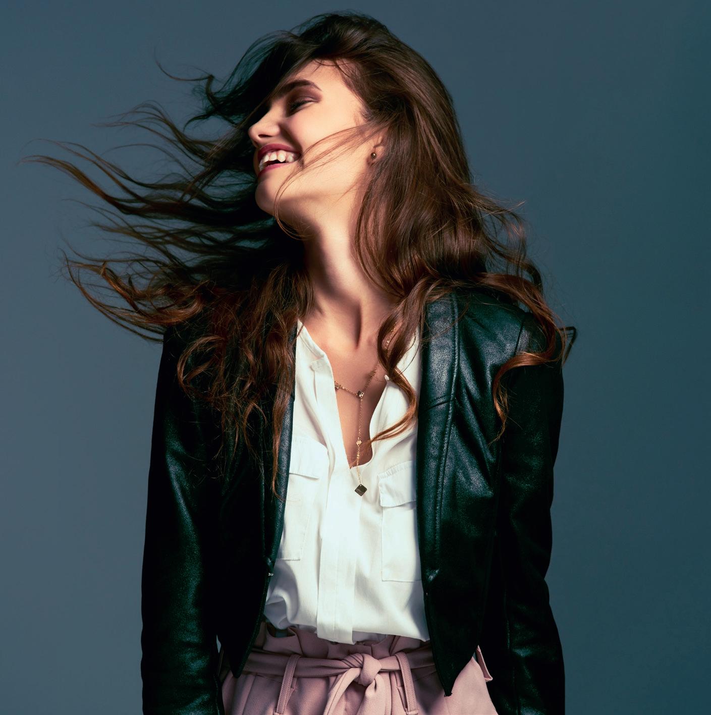 “Je ziet mij weinig in kleurtjes of prints. De enige print die ik in m’n kast heb hangen is leopard. Gezichten van vrouwen komen veel mooier uit als daar één tint onder zit. Ik ben gek op velvet, zoals m’n zwarte Isabel Marant sweater met elastiek.”