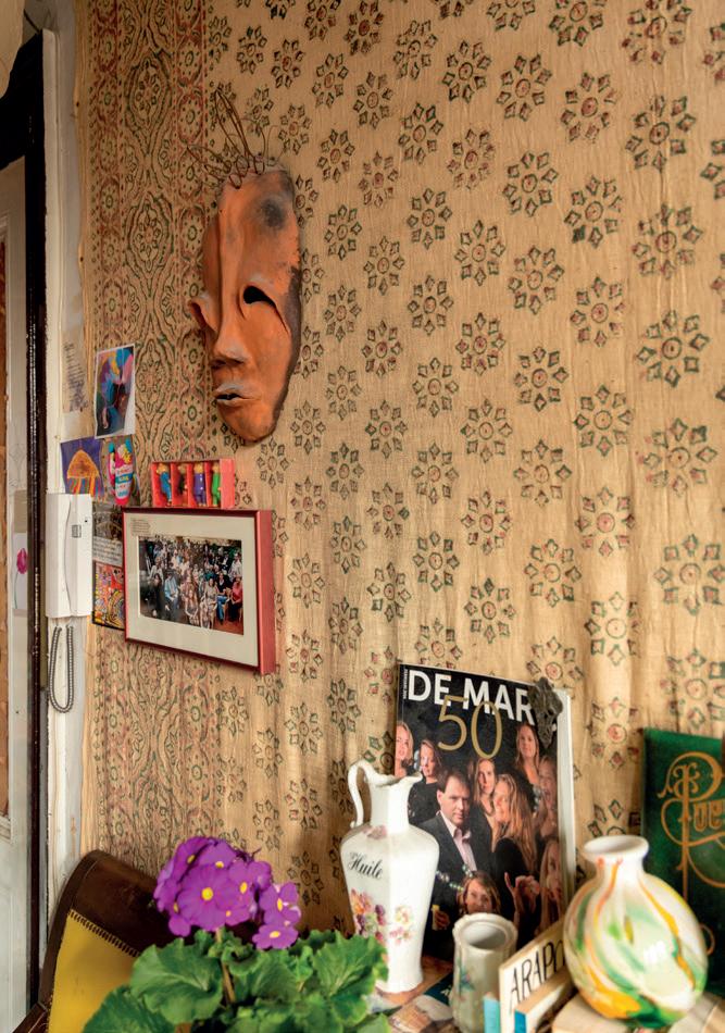 “Die behoefte heb ik niet, maar de Jordaan, Staatslieden- en Dapperbuurt vind ik ook aardige wijken. Dan zou ik wel in een rustig straatje willen wonen. Dat vind ik fijn aan deze straat: hier heb ik geen last van een langsgierende tram of het optrekken van auto’s bij stoplichten. Het is altijd rustig. En het Vondelpark en mijn lievelingscafé Gruter, waar ik elke dag koffiedrink en de kranten lees, zijn om de hoek.”