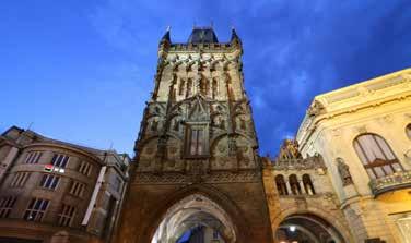 The Powder Gate (Prašná brána) is a late-Gothic structure and one of the most important monuments of medieval Prague. It was here that the Royal Route began and where one of the main roads from Kutná Hora, where silver was mined into the royal treasury, led. The Powder Gate was built in place of the older Gate tower, related to the fortification of the Old Town of Prague from the time of Václav II‘s reign. The older tower was known as the Mountain Gate.The Powder Gate was designed largely as a representative symbol as well as a customs collection point. Its construction began in 1475. From about 1715 it served as a firepowder warehouse, hence the name ‚‘Powder‘‘. During the Prussia siege of Prague in 1757, the tower was considerably destroyed. Today‘s appearance was not acquired by the tower until 18781886 for a fresh look treatment, led by architect Josef Mocker. The draft was the Old Town Bridge Tower.