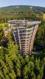 Poznat les z jiné perspektivy můžete na Stezce korunami stromů situované v srdci Krkonošského národního parku. Trasa dlouhá 1511 metrů vás provede od kořenů stromů až po vrcholky. Na 45 metrů vysokém vrcholu stezky se vám otevře dechberoucí výhled.