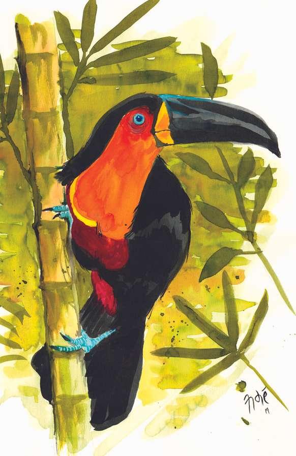 Saíras, Tiês, Jacutinga, Papagaios e Tucanos, são apenas algumas das inspirações que André Braga Jr. desbrava em suas pinceladas sobre o papel, onde sugere a observação pelas magníficas espécies de aves que existem no planeta