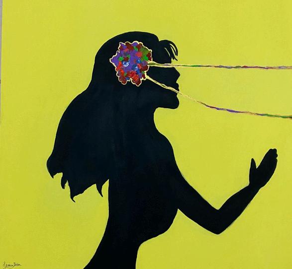 Jessica também reflete sobre sua jornada pessoal, relembrando como começou a pintar após o término de um relacionamento abusivo que a deixou com ansiedade “A pintura se tornou uma forma de me auto-regular Eu tinha vergonha de mostrar minhas telas, e foi uma colega de trabalho que me estimulou a trabalhar profissionalmente com a arte”, recorda. Essa passagem de sua vida a motivou a fazer de suas obras um veículo de fala, transformando suas experiências e vivências em arte.