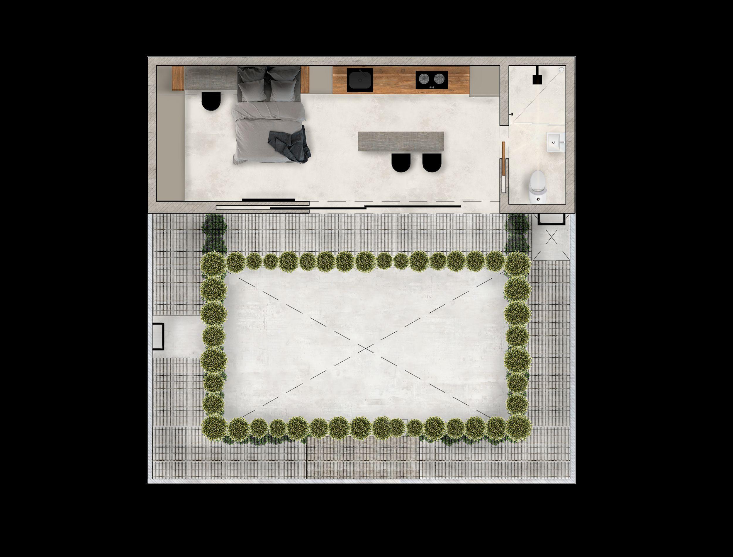 En el área del invernadero variedad de plantas y jardineras, dan la sensación de un espacio diseñado para vivir y respirar. El tea house tiene un diseño intencional de laboratorio, el uso de iluminación destaca en el espacio, con el fin resaltar los productos y el proceso de secado de las hierbas. La vivienda ubicada en el nivel 2, brinda al residente privacidad, así mismo un diseño minimalista favorecelasensaciónespacial.