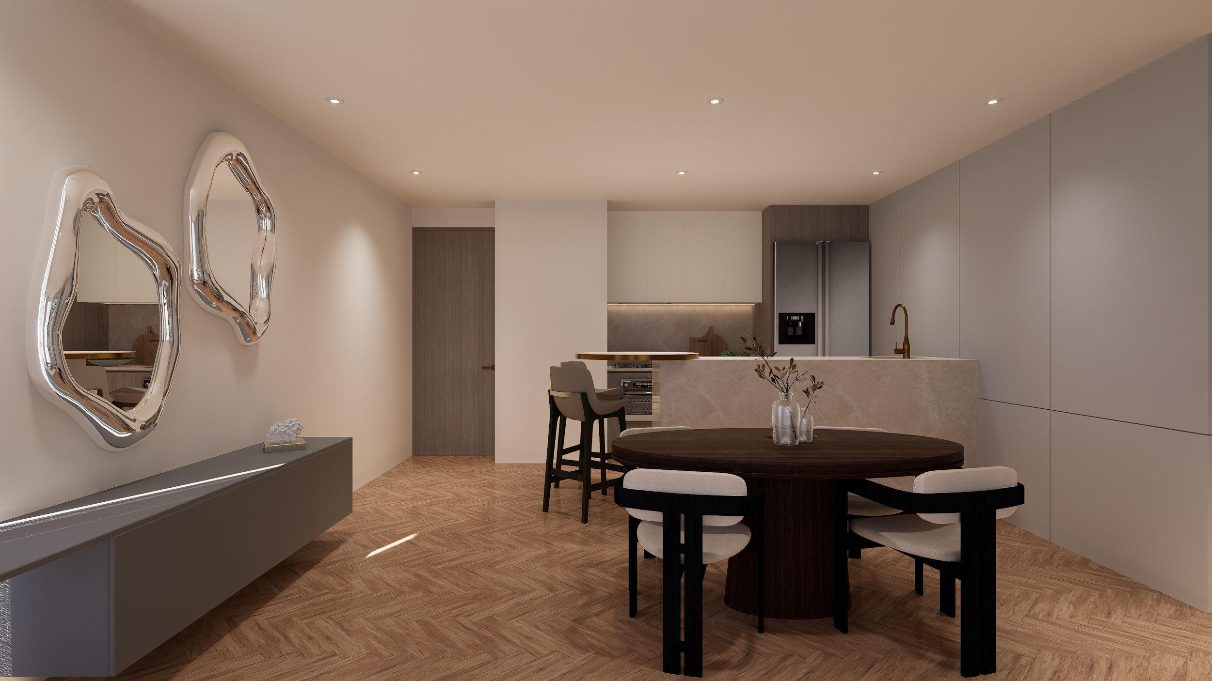 Inspirado en el estilo moderno orgánico, brinda una elegancia a través de líneas limpias y toque de calidez por medio de textiles acogedores. Debido a la limitante del espacio, se optó por una paleta de colores neutra, blancos cremosos y grises suaves, para generar una sensación de amplitud, pero jugando con contrastes de color y texturas traidas delanaturaleza.