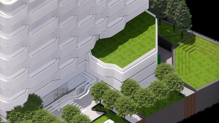 LOKASI KONSEP DESAIN SIMATUPANG Green Office menggunakan pendekatan bangunan hijau dengan menyatukan arsitektur dengan alam sehingga rancangan akan merespon lokasi sekitar bangunan serta meminimalisir penggunaan energi yang berlebihan dengan menggunakan energi terbarukan dan memaksimalkan pencahayaan alami pada bangunan GREEN BUILDING Jl Letjen TB Simatupang Kav 20, Cilandak Tim , Ps Minggu Cilandak Daerah Khusus Ibukota Jakarta ABSTRAK Jalan TB Simatupang merupakan kawasan di Kota Jakarta yang dekat dengan bangunan perkantoran pemerintahan, rumah sakit dan lainnya Pada daerah tersebut juga memiliki beberapa isu permasalahan lingkungan, baik isu non-arsitektural dan isu arsitektural Sehingga tujuan dari perancangan ini yaitu untuk menyediakan kantor sewa bagi para masyarakat khususnya untuk generasi muda dengan keseluruhan konsep ramah lingkungan (Green Builidng) dengan dasar keberlanjutan (Sustainability) SIMATUPANG Green Office memiliki luasan lahan 4 395m2 dengan total luas bangunan 23 960m2 yang terbagi menjadi Publik, Podium Rental Office, Management & Support, MEE, dan Sirkulasi serta parkir 80 POIN 100% 100% G B C I R E S I S T R V S 97.3% F I R E 33.3% E D G E SITE & REGULASI T Site memiliki luasan sekitar 4,395 m2 dengan pemaksimalan untuk KLB sebesar 24 000 m2 dan KDB 2417 m2 Site mengahadap ke tiga sisi jalan pada sisi selatan barat dan utara Site memiliki lu 4 395 m2 denga tanah tidak ber area perkotaan Area bangunan jauh dari sempadan jalan karena terdapat peraturan garis sempadan jalan (GSB) 2 875 m2 Rancangan memiliki strategi untuk mengurangi penggunaan kendalatan pribadi diganti dengan transportasi umum oleh karena itu dibuat jalur pesepeda Untuk memenuhi KDH sebesar 20% (sesuai peraturan daerah) maka dibuatlah beberapa area resapan air yang dipermukaannya ditanami rumput Untuk mengurangi gersangnya perkotaan dan untuk meminimalisir panas maka diperlukan vegetasi yang diletakkan agar dapat menjadi peneduh bagi pejalan kaki dan bangunan Kemudian dibuat perkerasan pavingblock dan beton untuk sirkulasi manusia dan untuk kendaraan bermotor dengan lebar jalan 3m - 5m LUAS SITE REGULASI 55% 5.48 K D B K L B 60% K T B 20% K D H 01