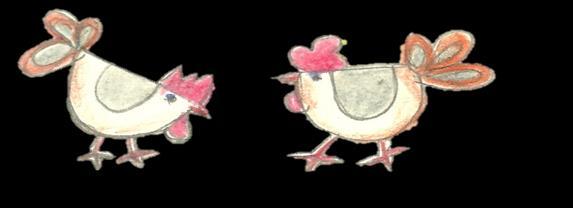 gallinas, pollitos y pavos se oyen piar, cacarear. . .