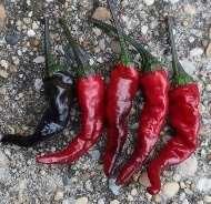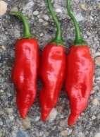 Capsicum annuum. Zöldből piros színűvé érnek a kb. 20-30cm-es hosszú lógó termések. Csípőssége: ~20.000SHU