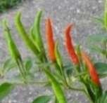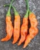 Capsicum annuum. Thaiföldrőlszármazó chili. A felfelé álló termések zöldből narancssárga színűvé érnek, kb 5-7cm nagyságúak. Bőtermő. Csípőssége: ~50.000SHU