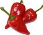 Capsicum chinense. A kb. 8-10cm hosszú termései sárga színűből piros színűvé érnek be. Igazi ritkaság! Kiválóan alkalmas cserépbeis. Csípőssége: 10.000SHU