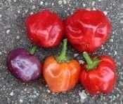 Capsicum annuum. Olasz eredetű,80nap. Zöldből lila majd piros színűvé érő édes paprika. Bőtermő. Felhasználhatóság:mindenrejó.