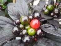 Capsicum annuum. Rendkívül látványos. Az apró 1-1,5cm-es gömb alakútermések feketéből piros színűvé érnek. A leveleizöldből fekete színűvé változnak a napsütés és a meleg hatására. Csípőssége 20.000-30.000 SHU.