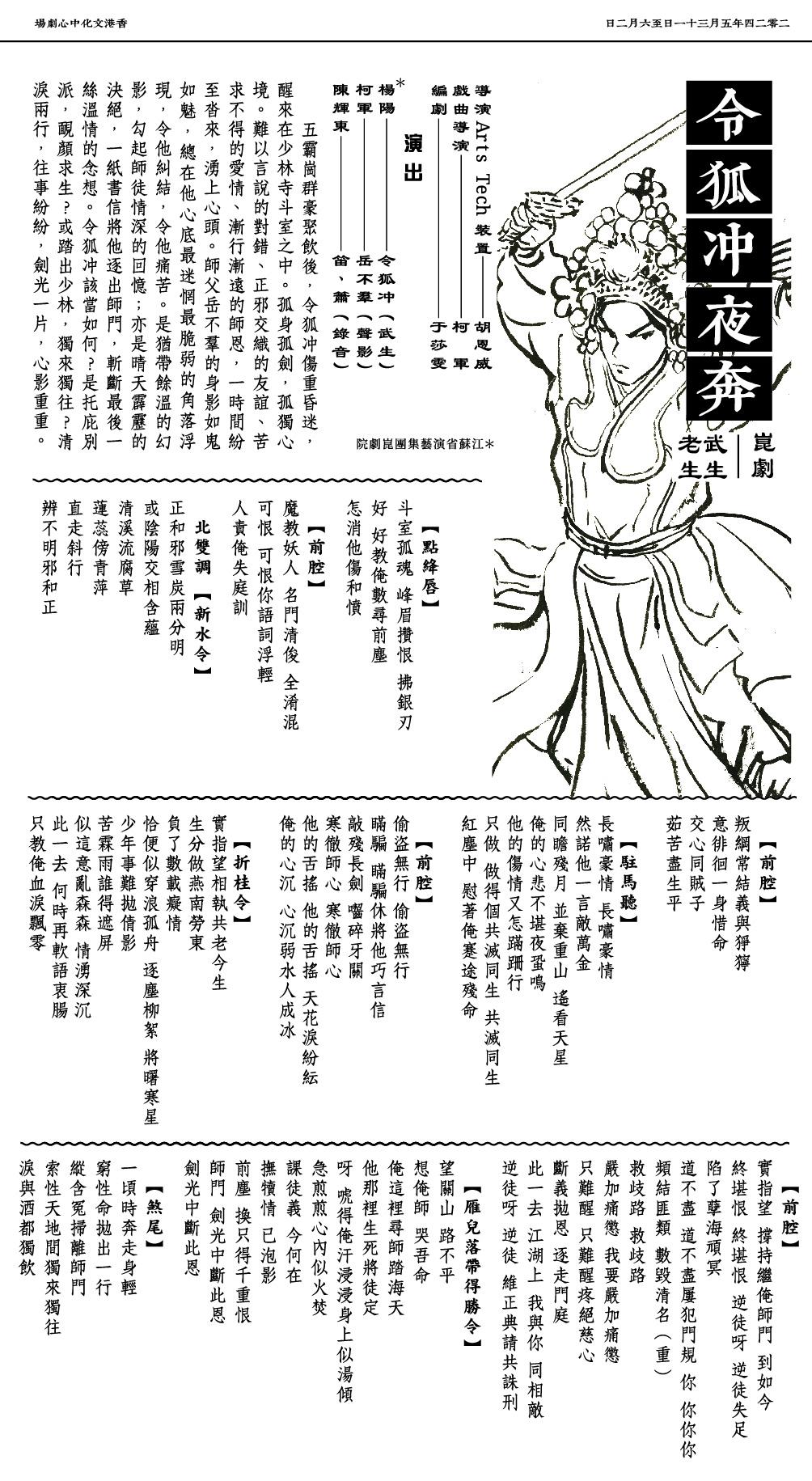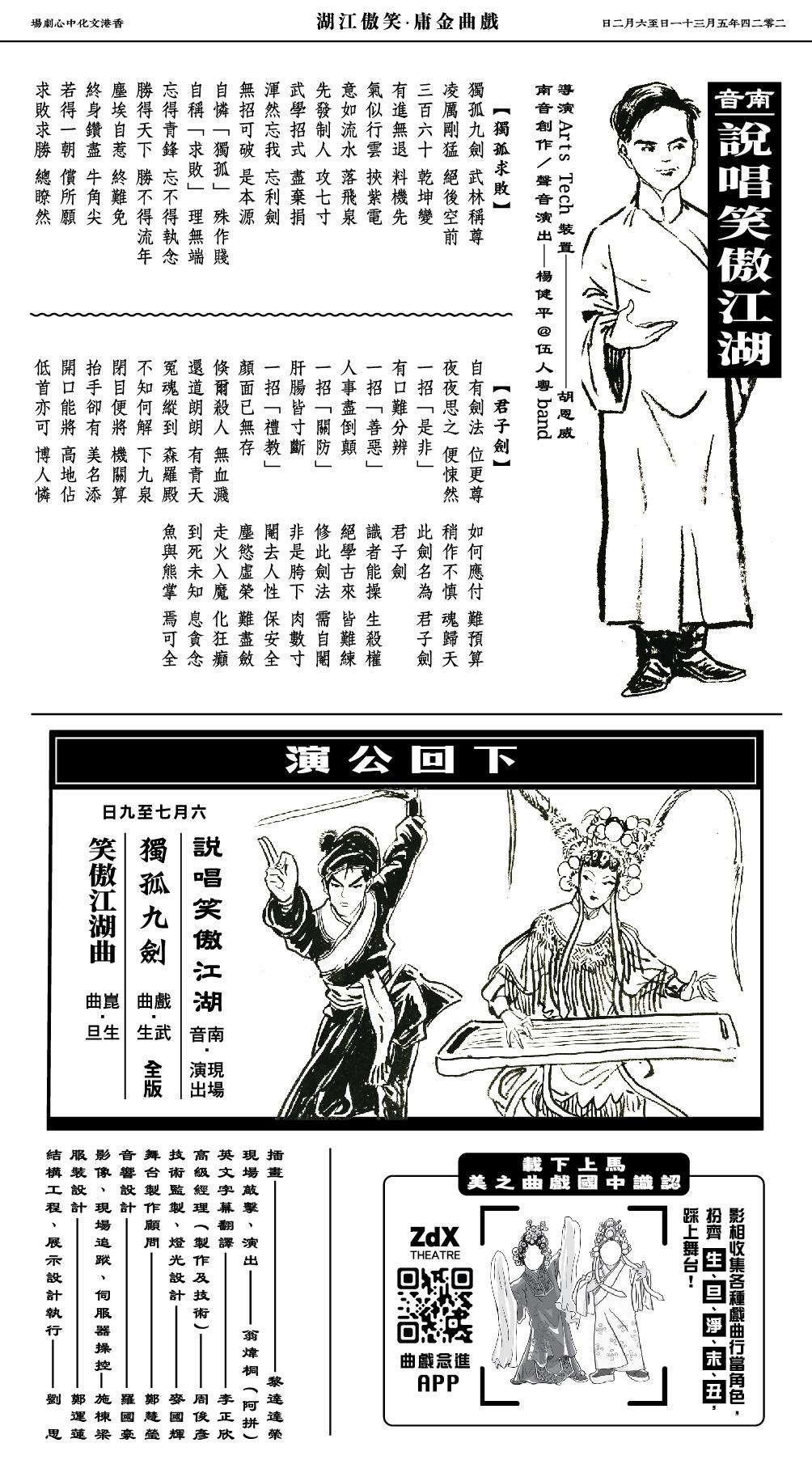 《戲曲金庸.笑傲江湖》 節目二場刊 Jin Yong Xiqu Theatre – The Smiling, Proud Wanderer Programme 2 House Programme