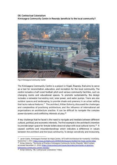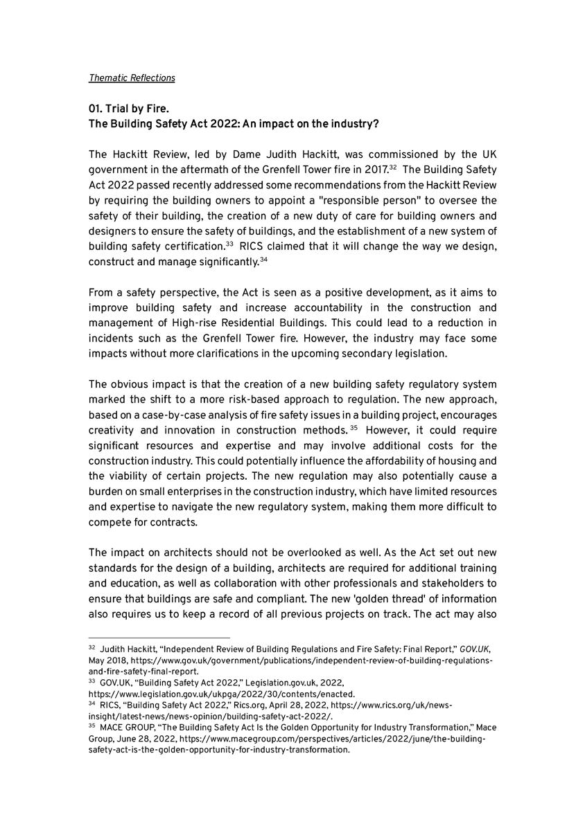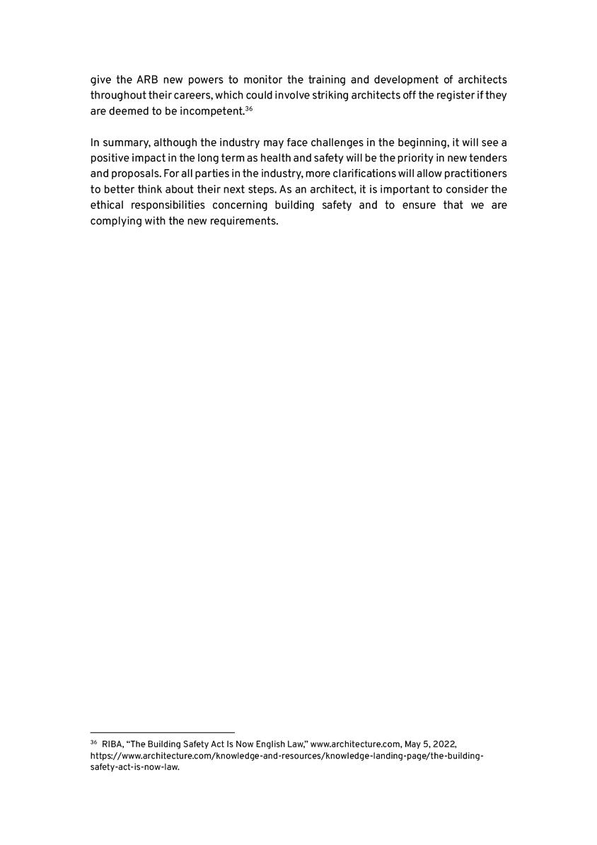 This realisation states the importance of continuing professional development in the feld. I anticipate that these areas will be further explored and strengthened during my future practice within architectural design companies. Through such real-world experience, I will be able to augment my theoretical knowledge with practical insights, thereby developing a more comprehensive understanding of all aspects of the architectural profession. In this way, I am confdent that I will progressively acquire the necessary skills and expertise to become a qualifed architect, capable of effectively navigating the complexities and nuances of the industry.