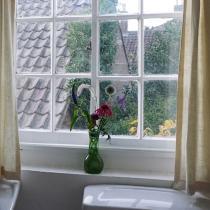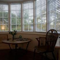 The bay window serves as a space for individuals to sit and enjoy the panoramic view of the western horizon. Part of the support area is included in the window frame
