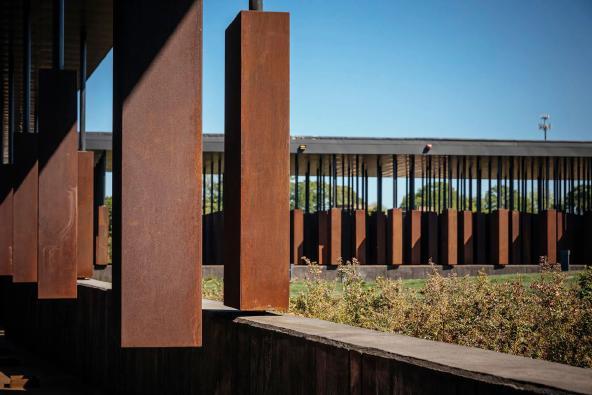The construction of the building relies on a selection of materials, namely timber, steel, and granite. The solid spine of the structure is primarily composed of heavy granite, which functions both as a facade and as a structural support system. The granite contributes to the building's stability while adding to its visual appeal. The light library, in contrast, is predominantly made of timber, which serves a dual role as both a structural element and an aesthetic feature. Additionally, the foor paving of the light library is distinguished by functionality, utilising timber paving for the interior and terracotta paving for outdoor circulation spaces. This design feature not only provides spatial demarcation but also enhances the facility's overall visual impact. The utilisation of these materials contributes not only to the visual appeal of the building but also to its resilience and longevity.