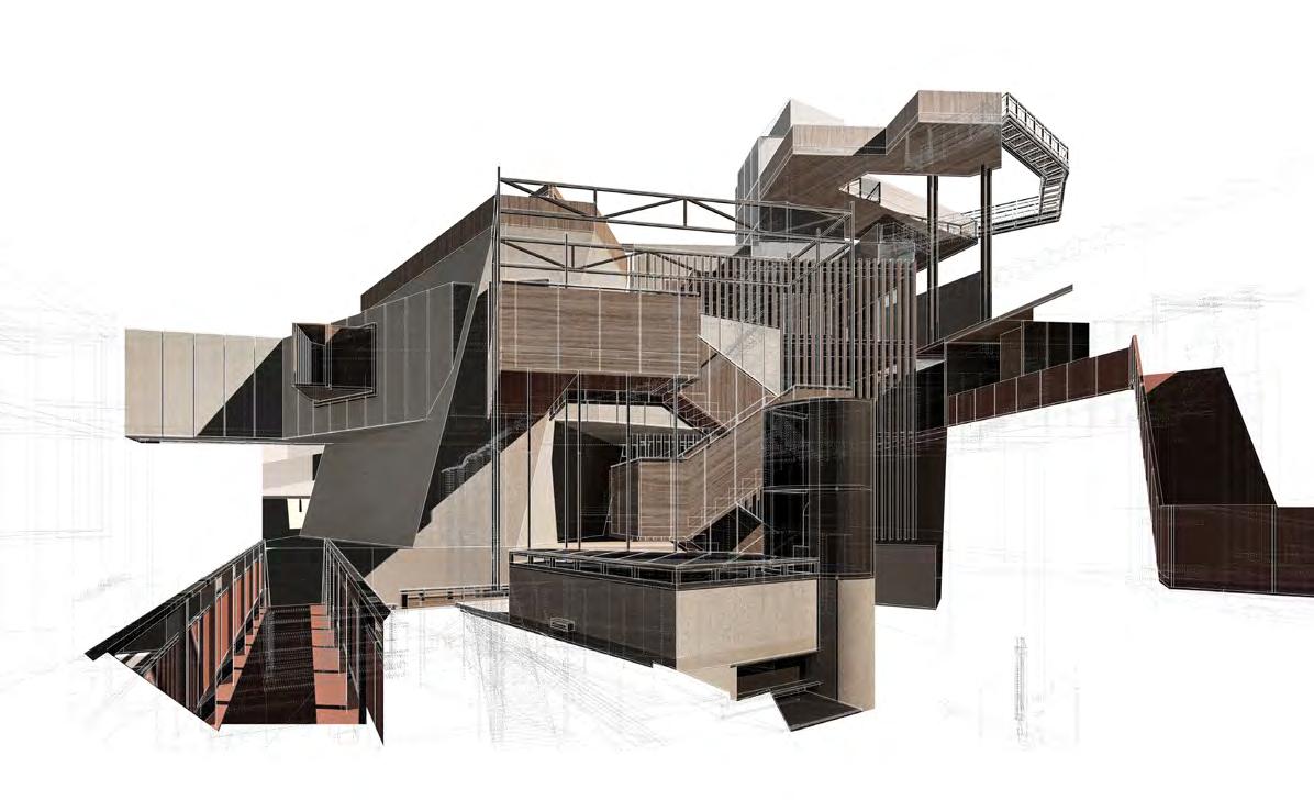 The El Nuevo Palacio de Ávila project has been a holistic journey, encompassing concept generation, design thinking, drawings and model making, and showcasing our work in a comprehensive manner. The transformative architectural concept we developed interweaves educational, performative, and governmental spaces, revitalising a once-overlooked area of the city. By incorporating unfolding and enfolding, we have produced a dynamic and forwardlooking design that respects the historical and cultural roots of Ávila.
