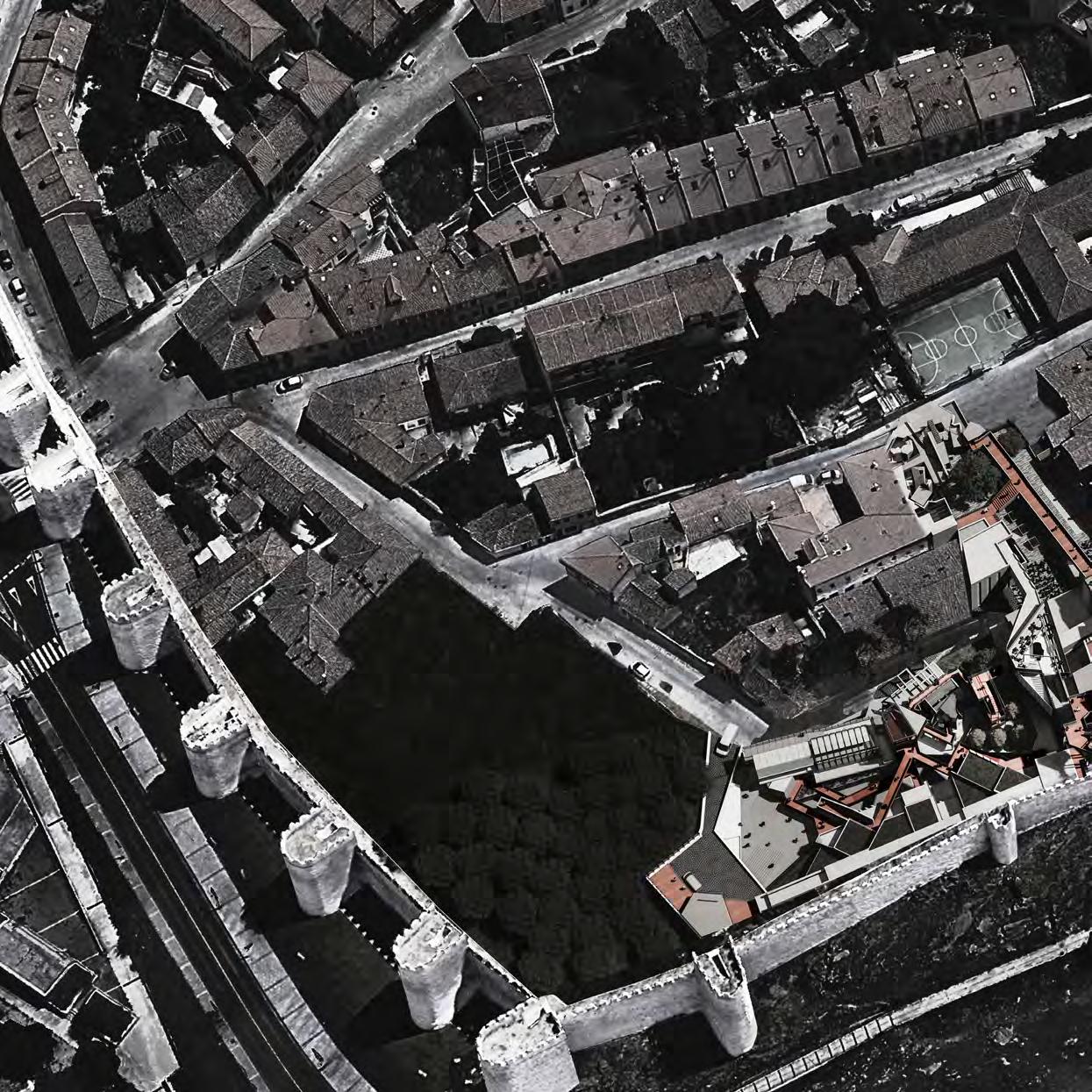 Occupying a granite outcrop and tethered at the angle of the western wall, the El Nuevo Palacio de Ávila offers a landscape of educational, performative and governmental spaces to a community overshadowed by its neighbours to the east. Eastern Ávila, elevated, fed by natural springs and peopled by palaces and convents stands in stark contrast to the lower west with its impoverished and workaday heritage of smallscale manufacture, storehouse and transient populations.