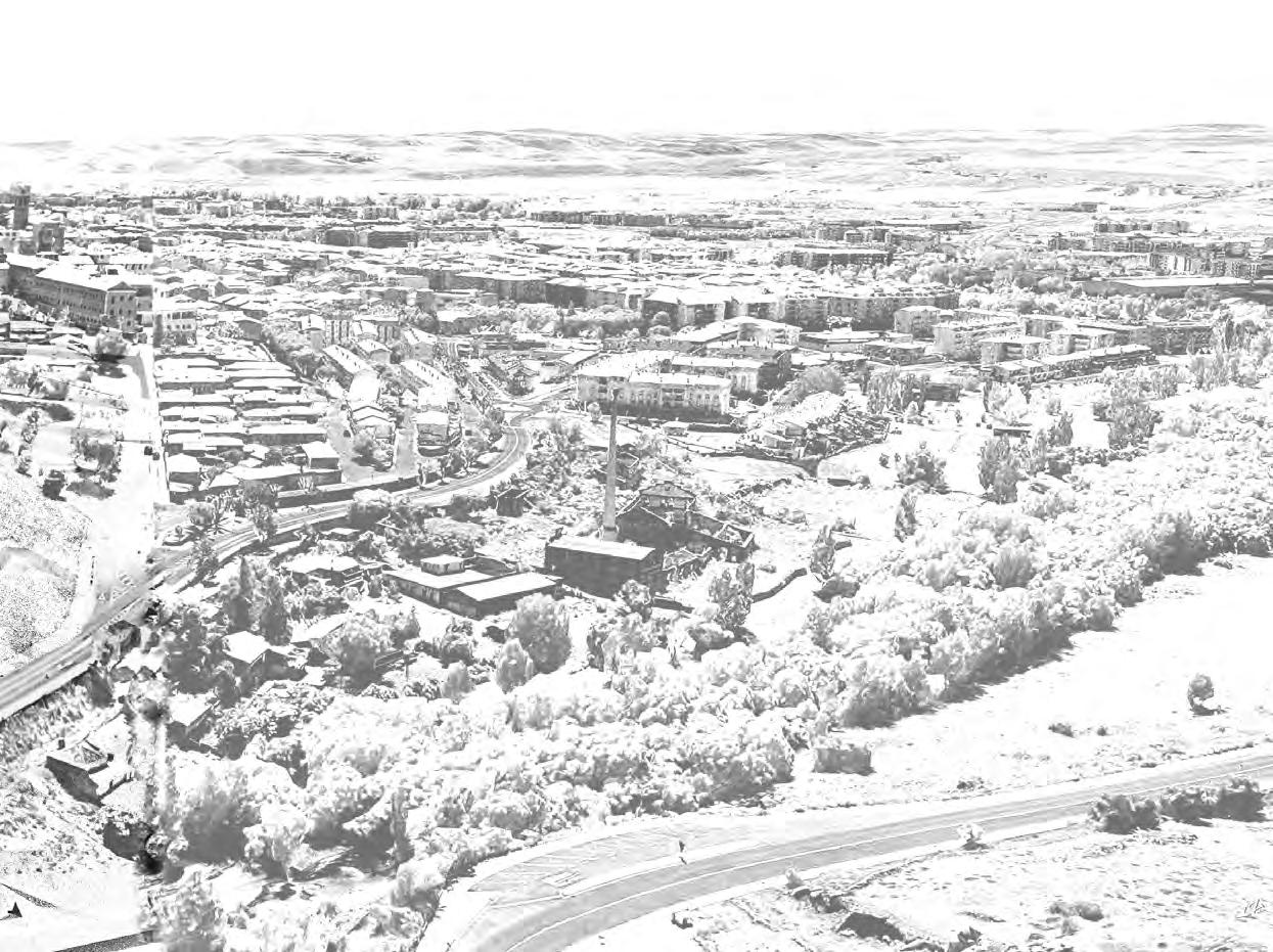 The image highlights the River Adaja and its potential floodplain, which may be increasingly vulnerable amid the climate crisis due to melting water from the surrounding mountains. This floodplain serves as the foundation for our continued investigation, as we explore the complex interplay between natural and built environments. By addressing the challenges posed by climate change, our design approach aims to create resilient and adaptive architectural solutions that harmoniously blend with the landscape while maintaining a strong connection to Ávila's unique heritage.