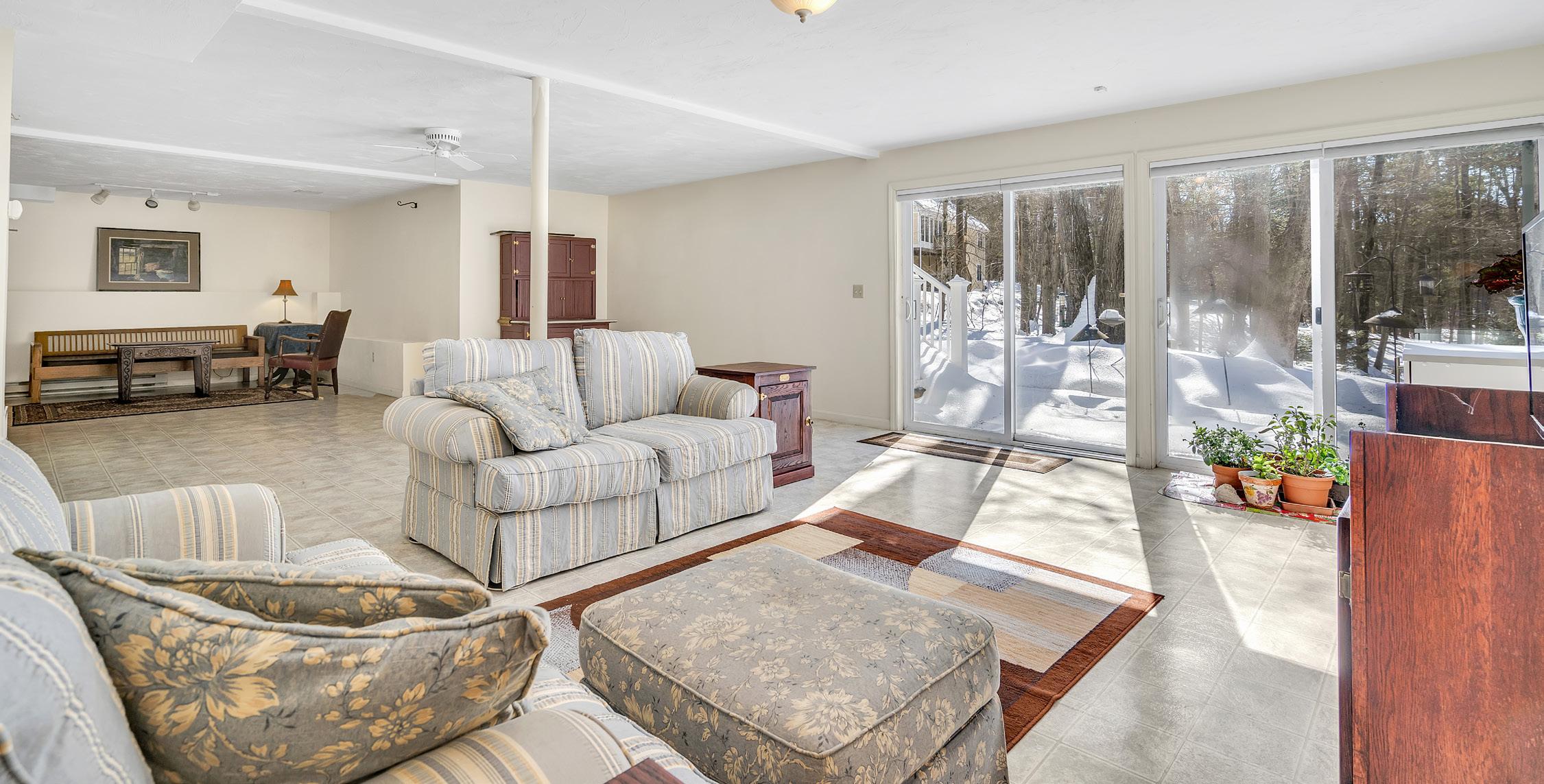 Located on the north side of sudbury, frost farm village is a wonderful 55+ community. This home offers three levels of living space with the comfort of knowing exterior maintenance, road maintenance, landscaping & snow removal will all be taken care of! This home is one of the most sought-after floor plans. The first floor of this condo sings with vaulted ceilings, seamless flowing spaces & a spacious first floor primary bedroom! Bright & cozy with a fireplace, the living room leads to the sunroom with beautiful nature views! New deck! The first floor home office would also make a terrific guest space or home gym! Upstairs is ideal for guests with a comfortable bedroom with a wic. Drenched in natural light from the walk-out glass doors, the lower level feels like first floor living! Offering a convenient attached garage & two parking spaces plus direct access to the bruce freeman rail trail! This is the one for you!