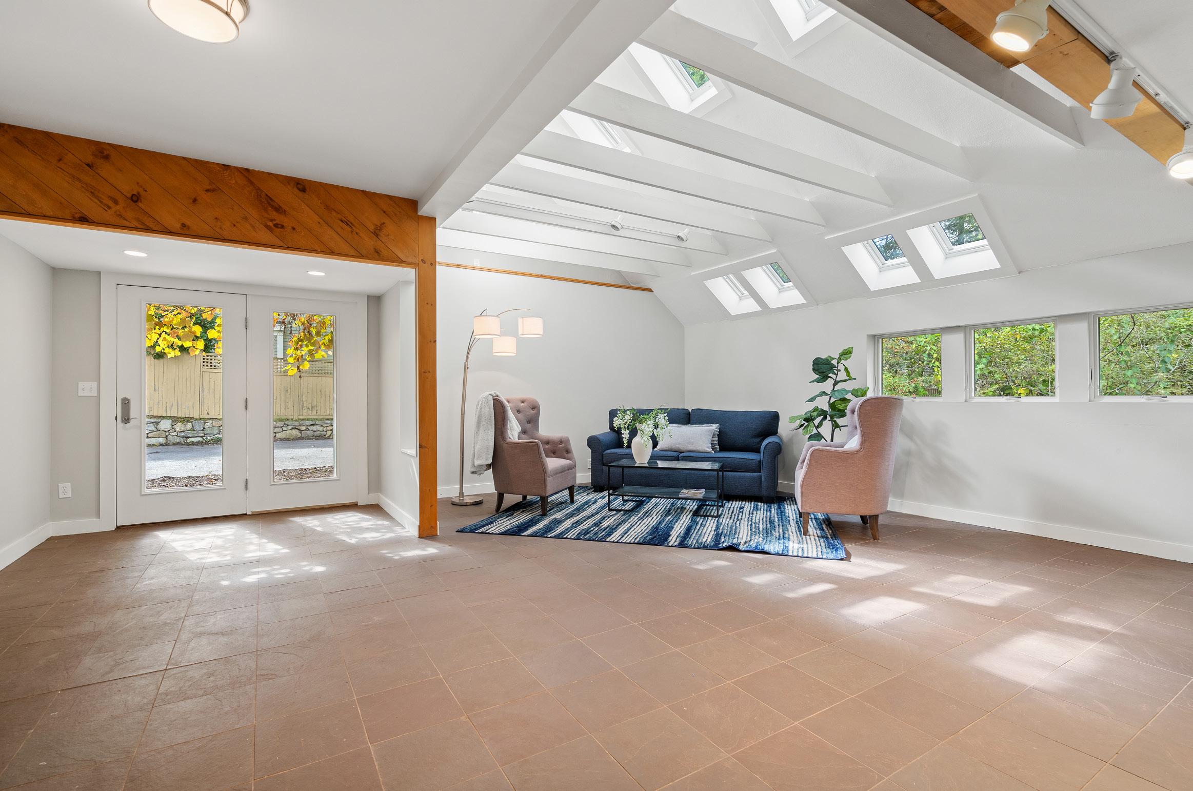 In the heart of Concord Center - built in the late 1940s, great birth years for houses, this home was built by craftsman and taken care of by angels. When you walk into this home there is a warmth that you feel immediately. It is an adorable storybook white stucco cape with a significant addition designed for an artist. This space serves as a family room which anchors the far end of the house & features vaulted ceilings, a wet bar & a loft home office! The kitchen is charming with soapstone counters & plenty of cabinet space. The 4 season sunroom can be enjoyed just a few feet away! A cozy 1st floor bedroom has an adjacent full bath. A second staircase leads to a private 2nd floor that offers 2 bedrooms & a full bath. An intimate & delightful backyard showcases the perfect amount of privacy with beautifully mature plantings & a stream! A romantic trellis side entry adorned with vines is a true fairytale. Enjoy the ultimate village lifestyle - near local shops, restaurants & rail!